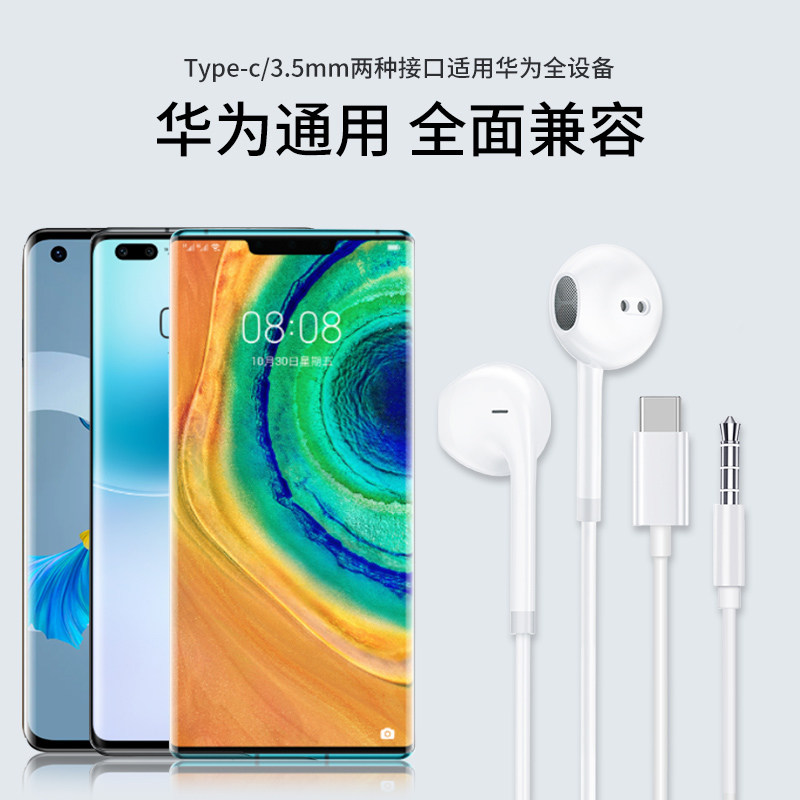 Headphones apply Huawei headphones type-c In-ear Wired p20p30pro p40mate20 30 10pro nova5 6 7 4 Rong