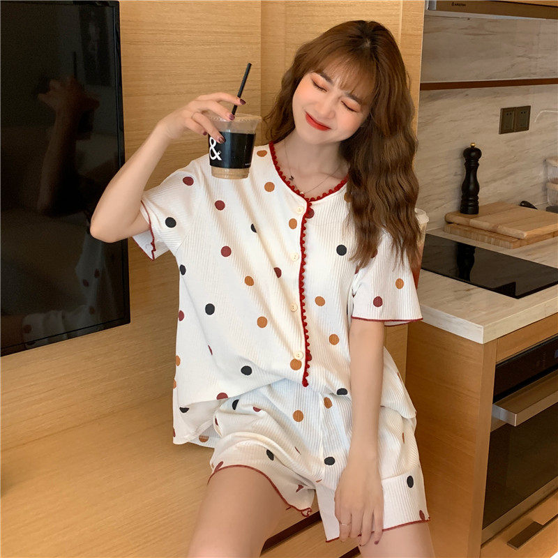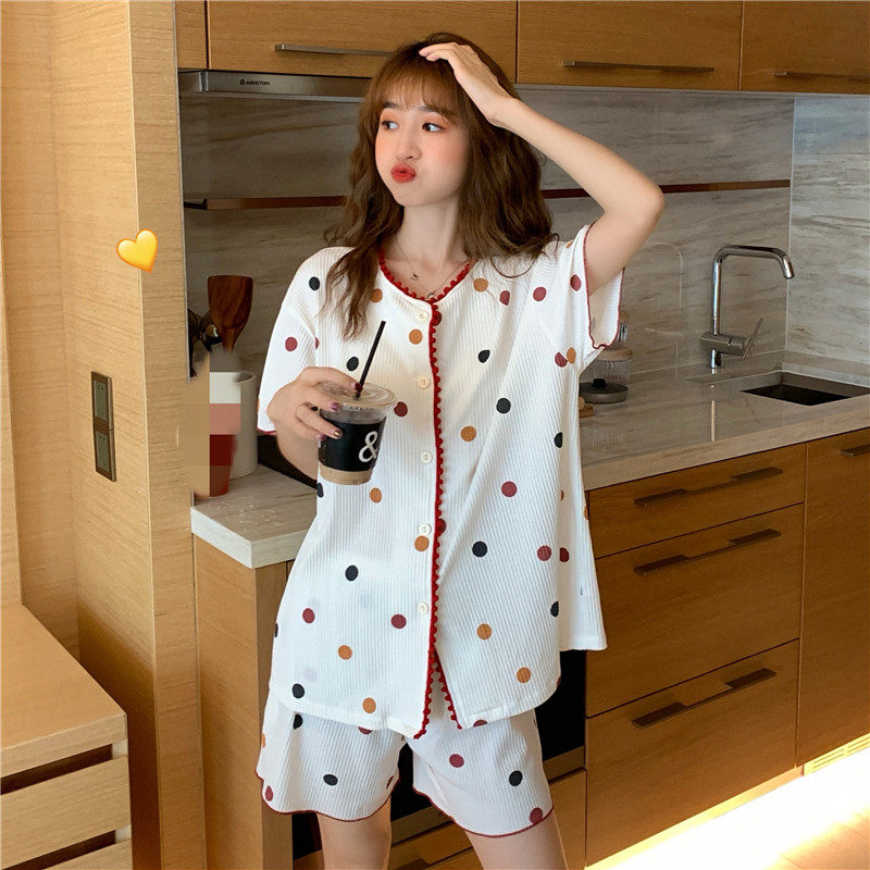 VIRRI CIAGA French design sense niche LIGHT cooked short-sleeved rainbow wave dot WOMEN'S HOME wear PAJAMAS set