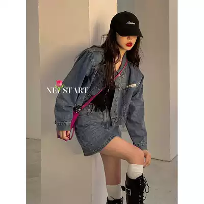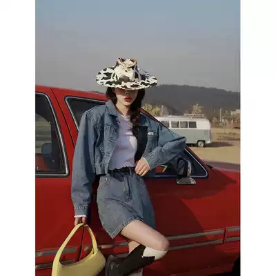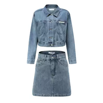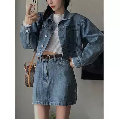 Spot Barbie denim suit female summer thin fried street Korean short denim skirt A- line dress two-piece set