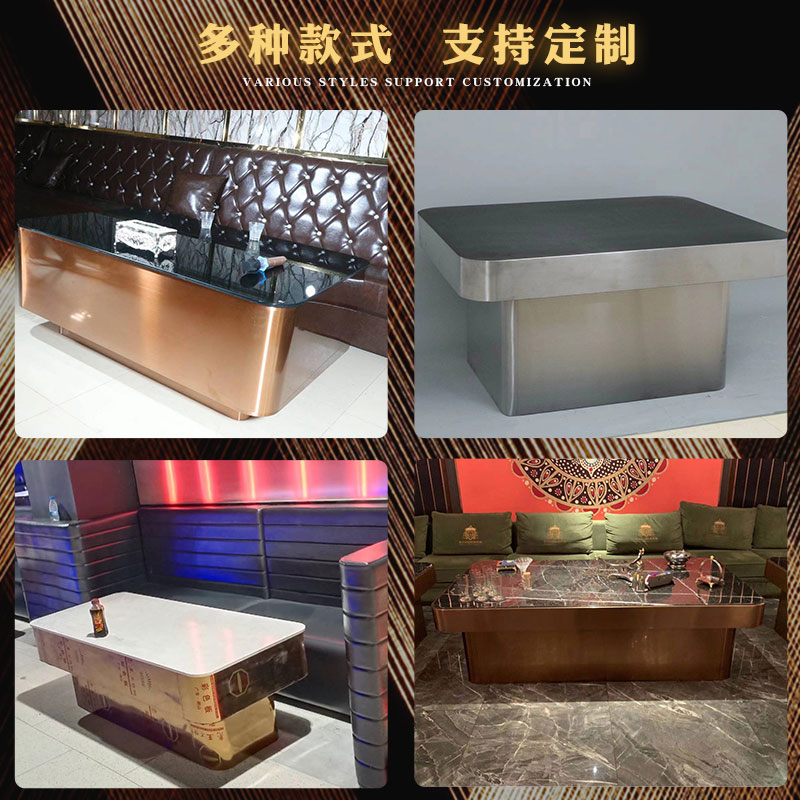 Manufacturer Direct Sales Customized Bar Ktv Cassette Bulk Desk Special Table Fashion Bag Compartment Luminous Tea Table Stainless Steel