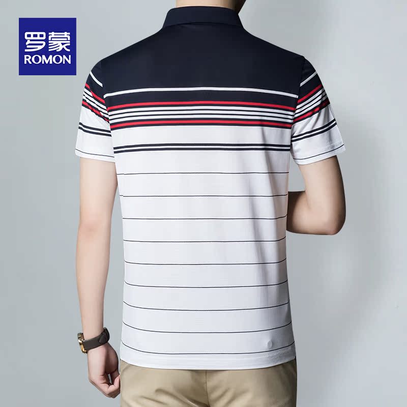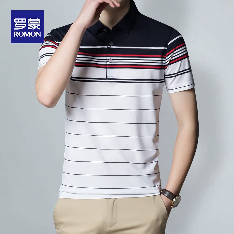 Romon Men's t-shirt slim mulberry silk high-end short-sleeved business half-sleeve fashion youth casual Polo shirt Men's clothing
