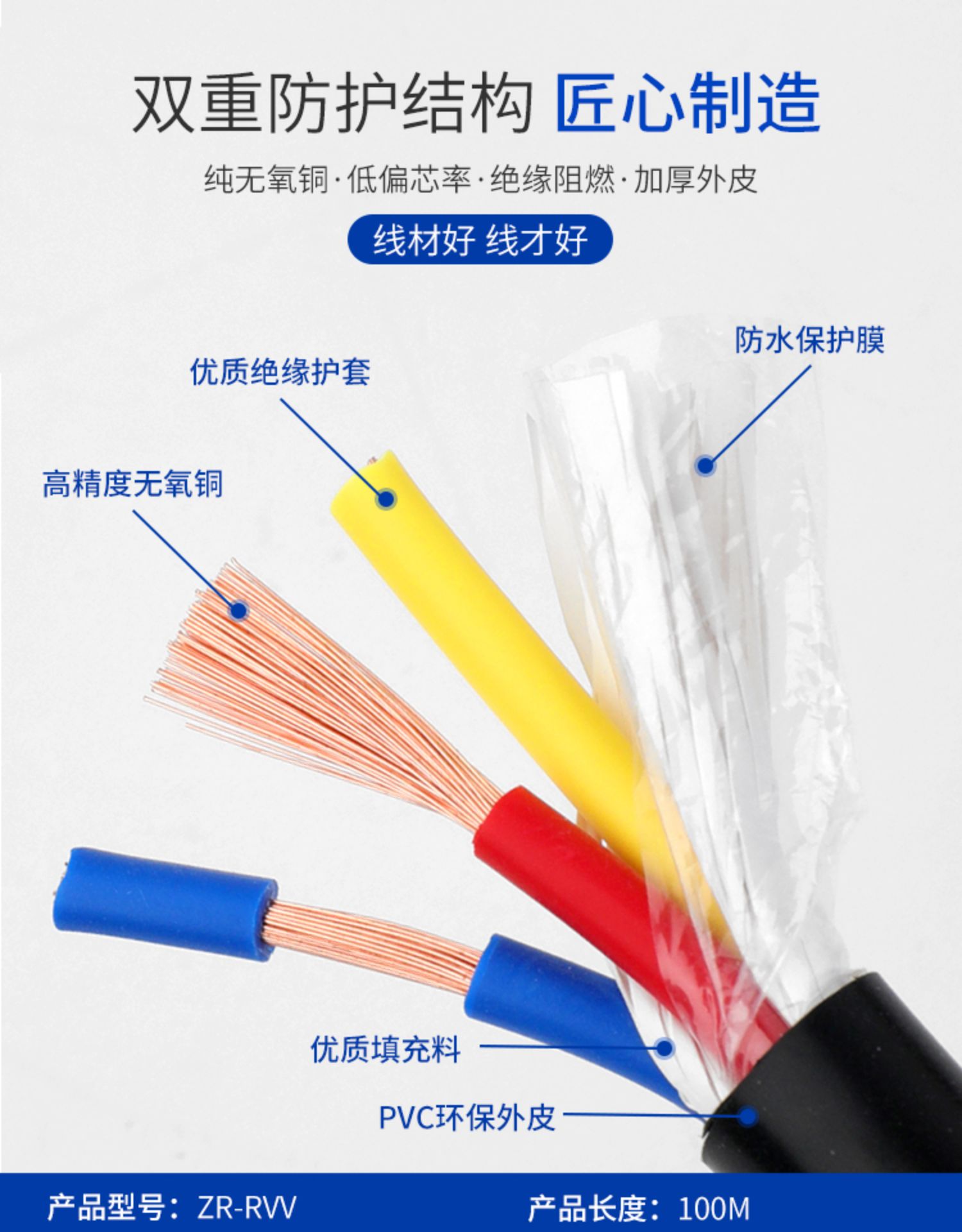 Pure copper flame retardant RVV2 3 4 5 core 0 5 1 0 75 1 0 1 5 5 2 power supply jacket Soft cable-Taobao