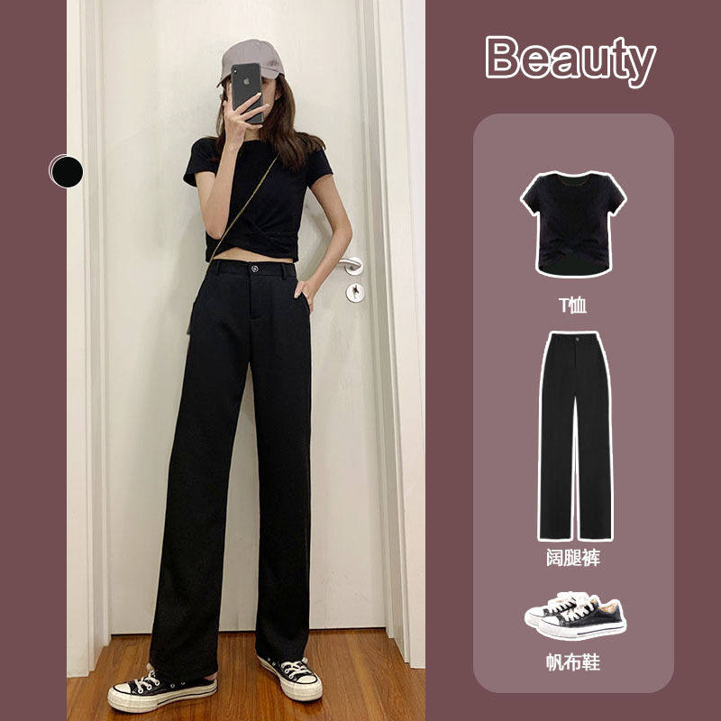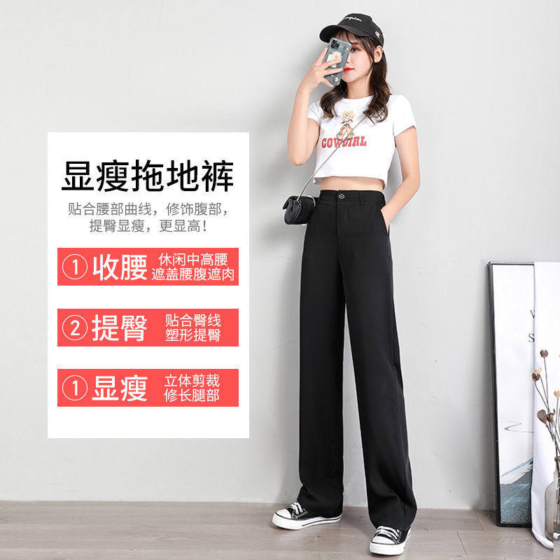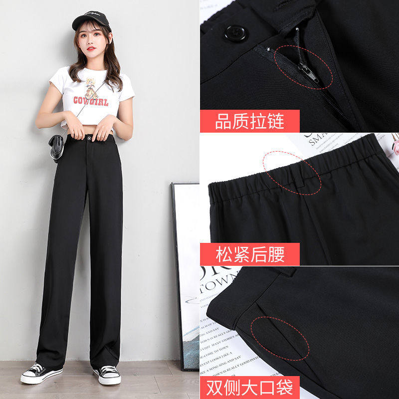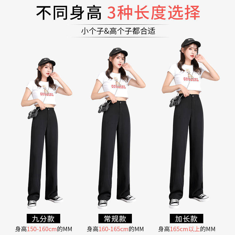 Broadlegged pants female spring and summer high waist pituality Han version small submopping loose black display slim straight drum ice silk casual pants