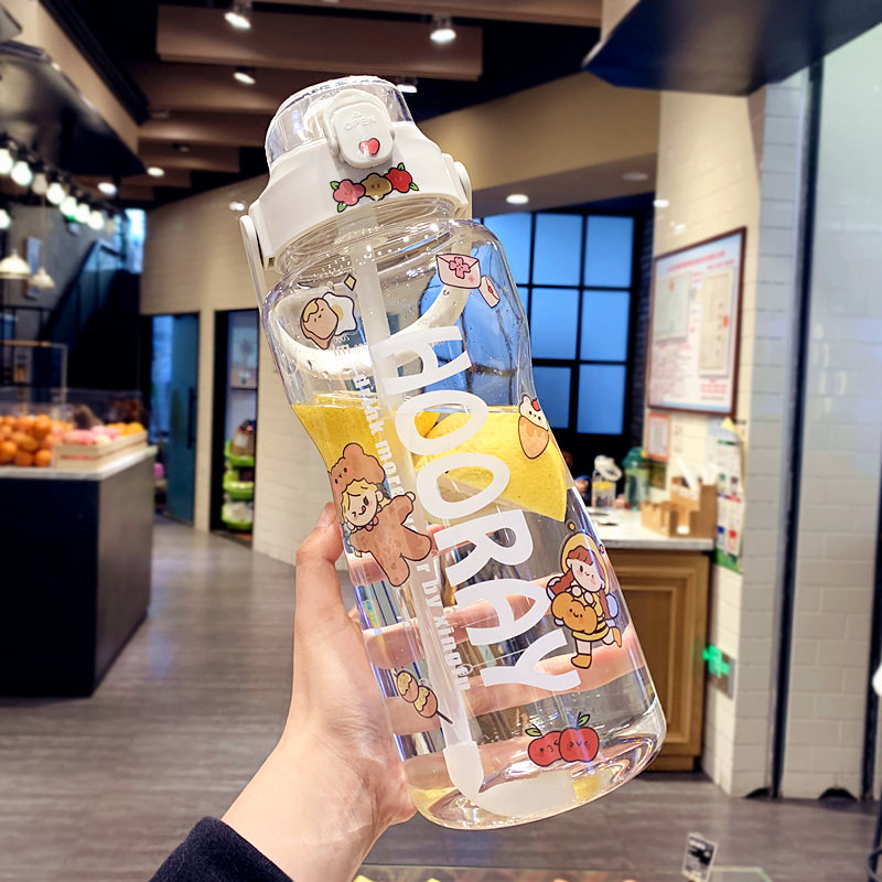 2L Large Capacity Water Glass Female Brief Summer With Straw Plastic Cups Students Portable Sport Large Fitness Kettle