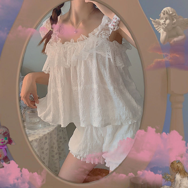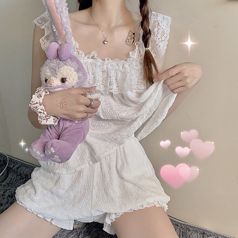 New Summer Han Edition Teenage Girl Sweet Home Suit Female Students Day Ensemble Casual Outwear Short Sleeve Pyjamas