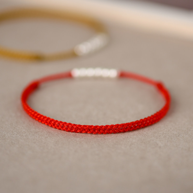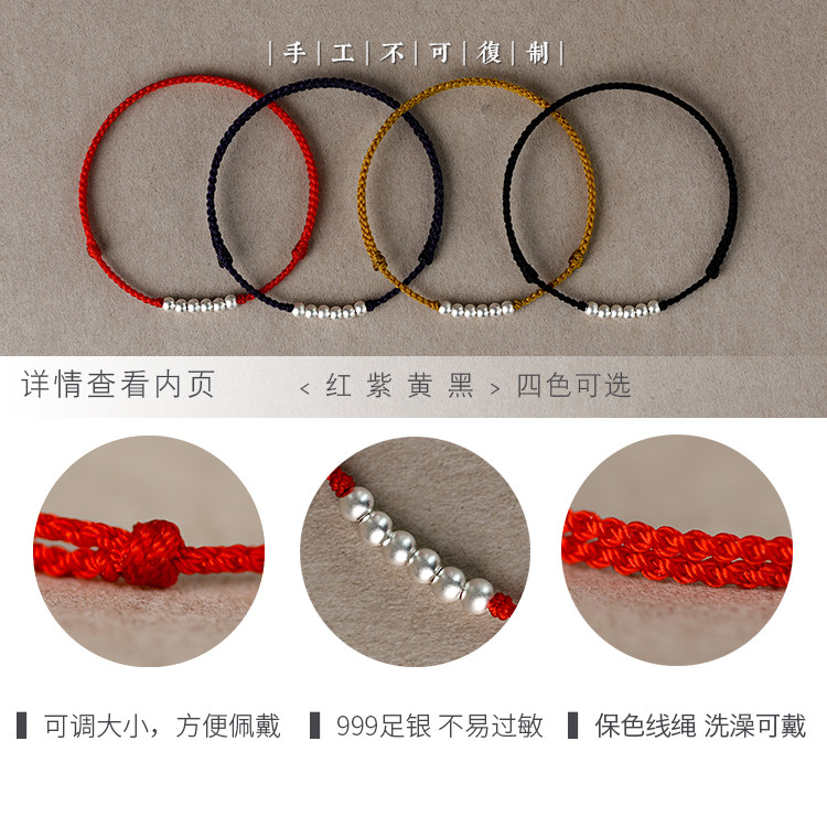 Ancient method pure silver transshipment pearl red rope foot chain female ancient wind 2021 new without fading black rope retro personality silver decoration