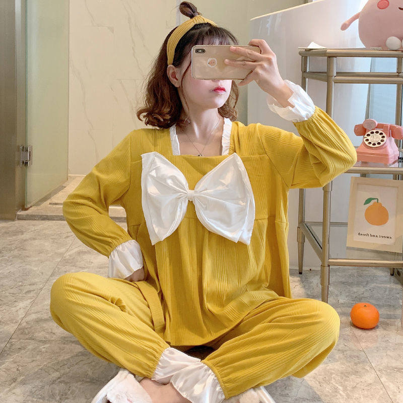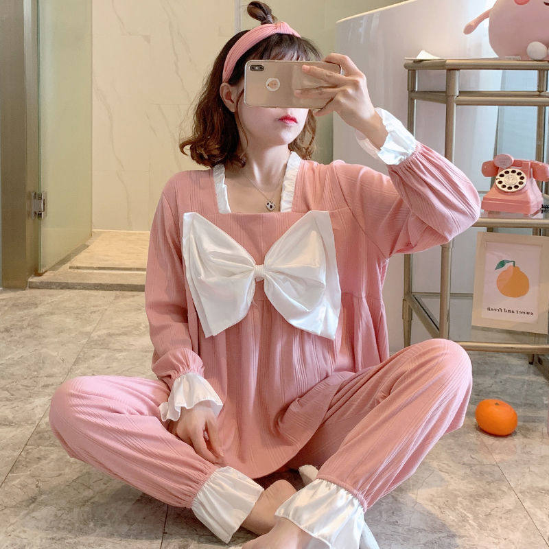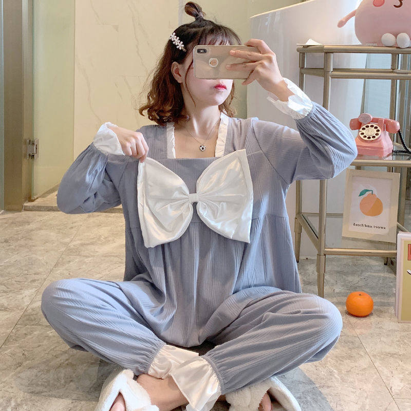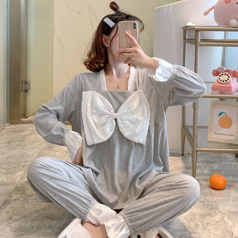 Sleepwear Woman Spring Autumn Season New Cotton Long Sleeves Extractable Grey White Winter Full Cotton Net Red Home Suit Suit