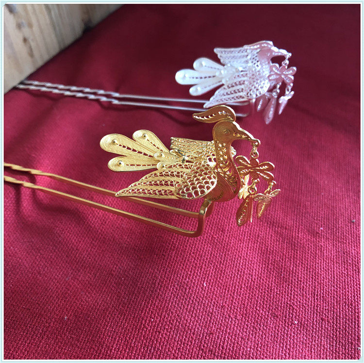 "Incense Miao art" 999 pure silver-white gold hair Hairpin traditional pinch of silk-tired silk handicraft headwear Zhengfeng-Taobao