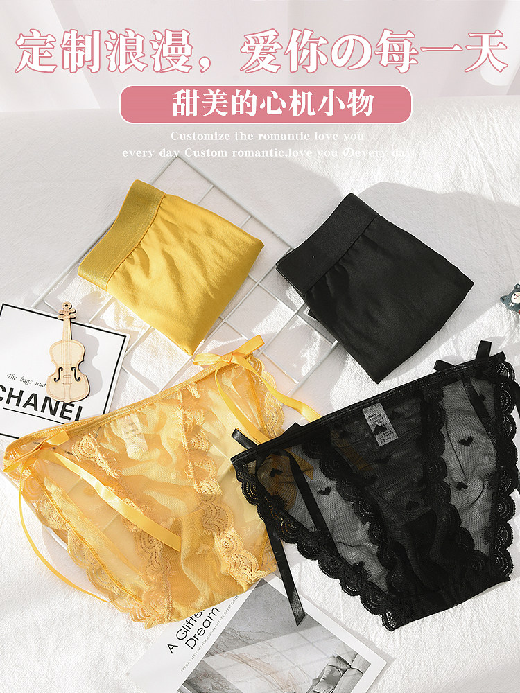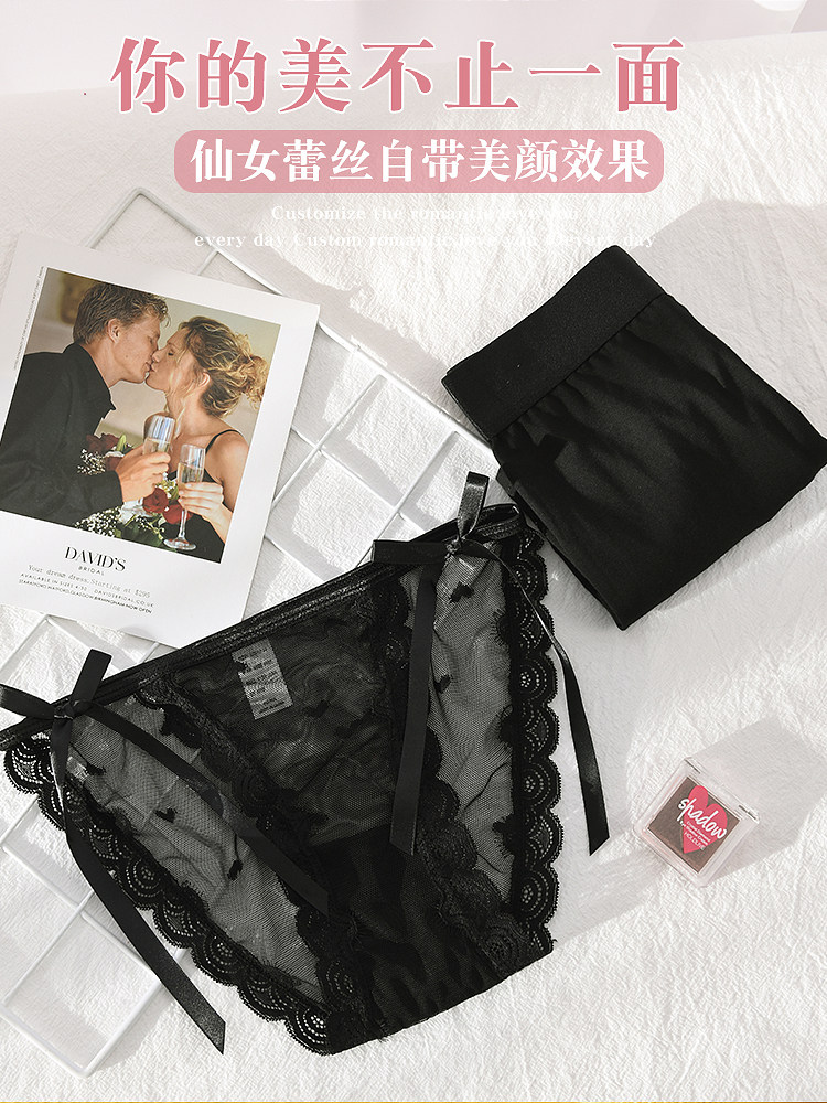 Lovers Briefs Sexy Suit Netting Lady Triangle Pants Bow Tie Black Pure Cotton Four-corner Pants Man Breathable Youth