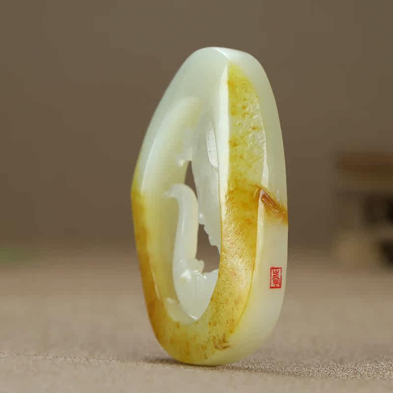 Xinjiang and Tian Yuyu lipid white jade pendant audio mount hanging piece of jade natural seed master jade crash 40 5 grams