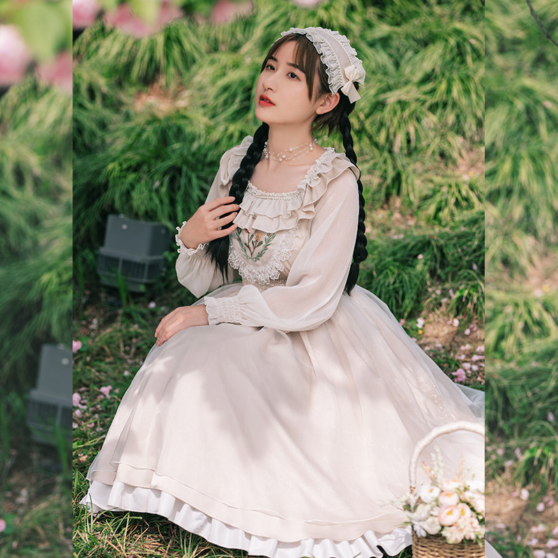 (Qinghuan op) withpuji original design embroidery fresh dream elegant field garden wind Lolita spring summer