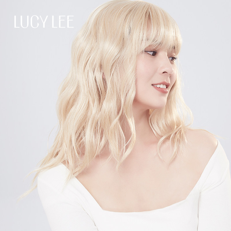 LUCY LEE HUMAN BARBIE GOLD FASHION WIG FEMALE FULL HEADGEAR MEDIUM LONG CURLY NATURAL FLUFFY IMITATION WOOL ROLL