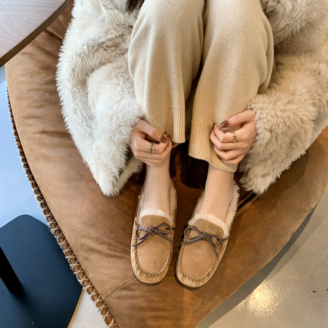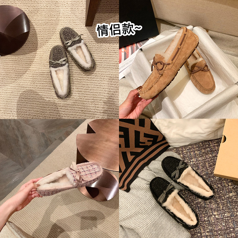 (broken code pick-up) No to no-no-no-no-couple's butterfly knot coarse flowers, flat bottom wool woollen shoes women bean-bean shoes-Taobao