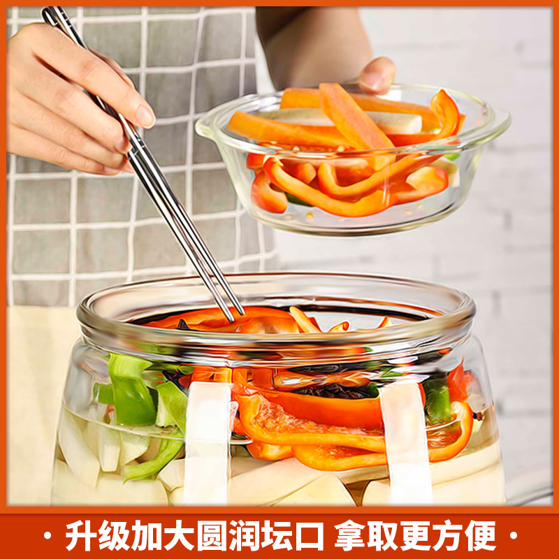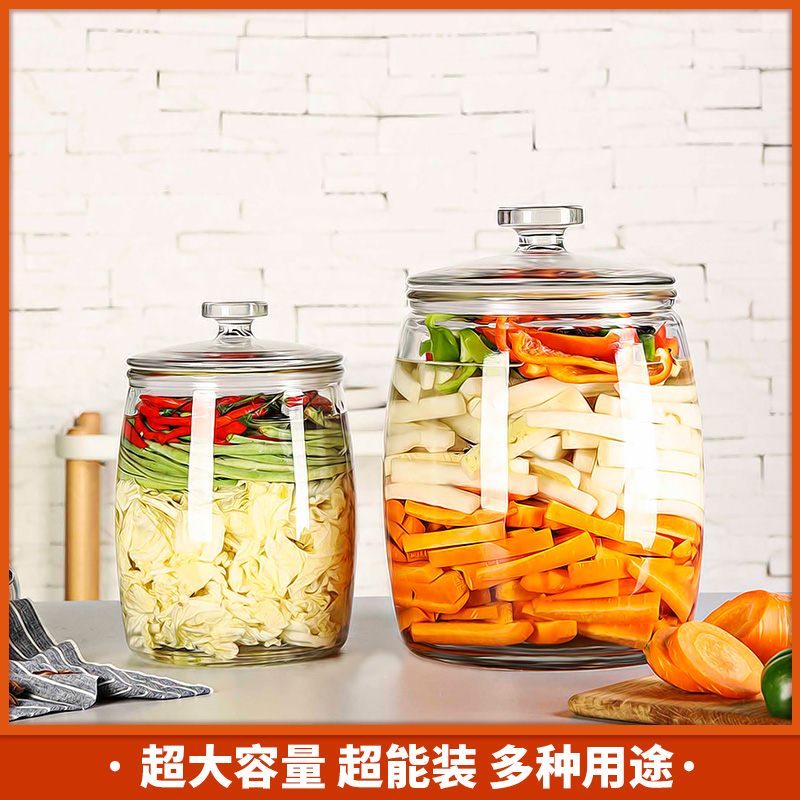Glass sealed jar rice bucket glass bottle large household transparent belt cover kitchen food miscellaneous grain storage jar kimchi altar