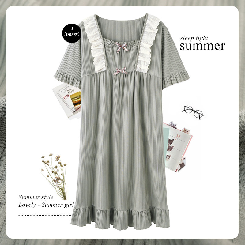 Mrs. Silie Sleeping Sleeping Dress Woman Summer Pure Cotton Short Sleeve Palace Princess Wind Thin 2021 New Home Gun