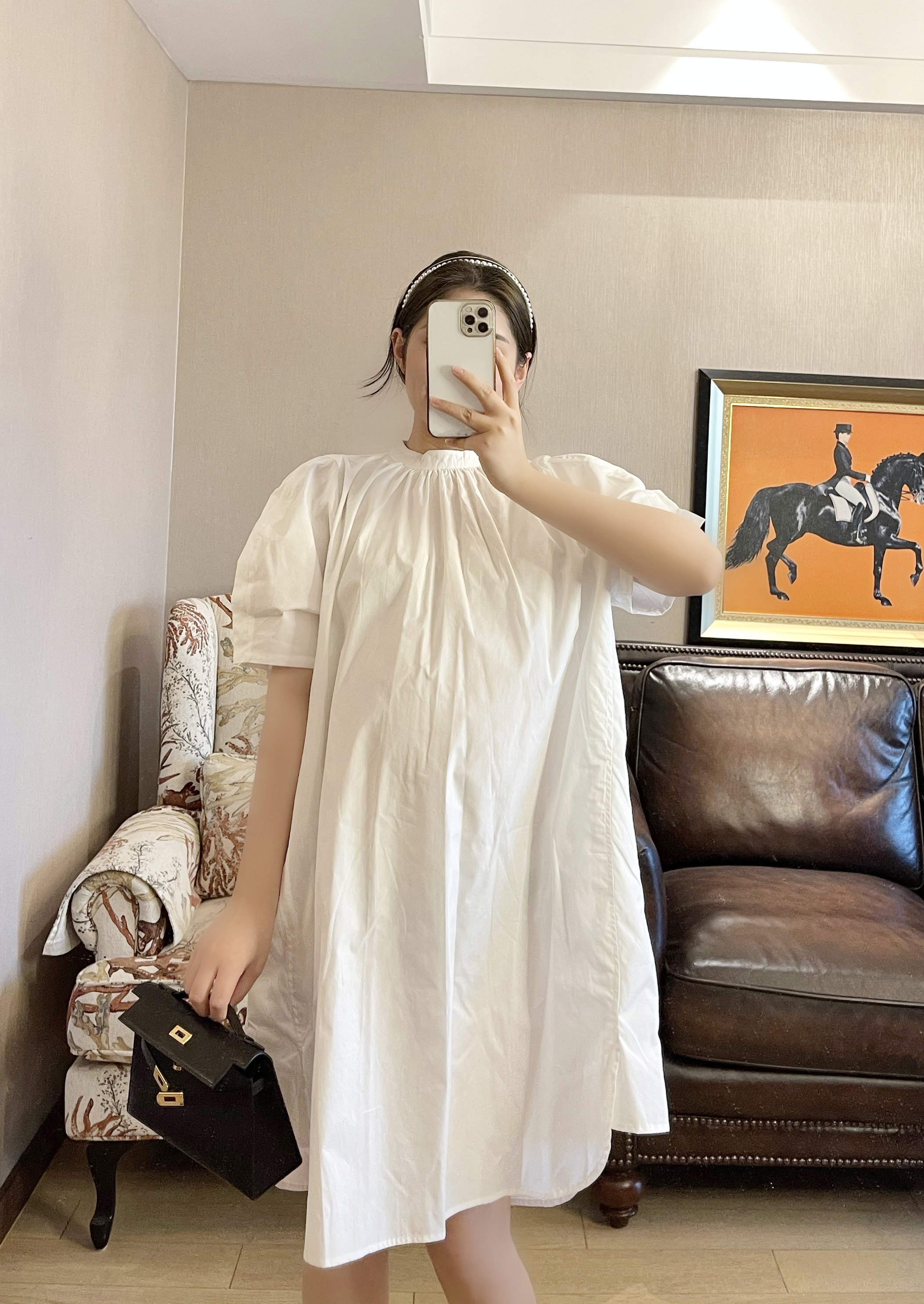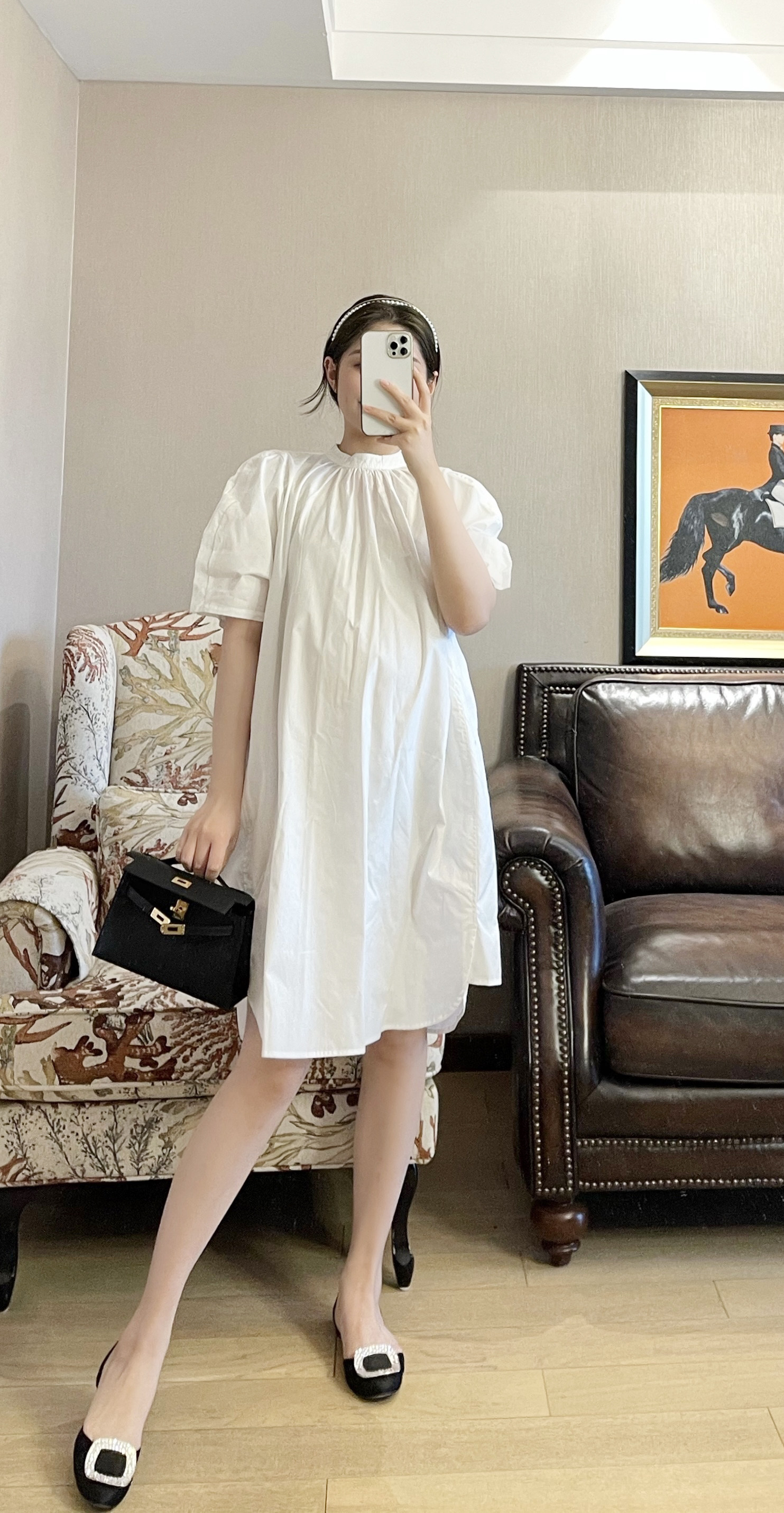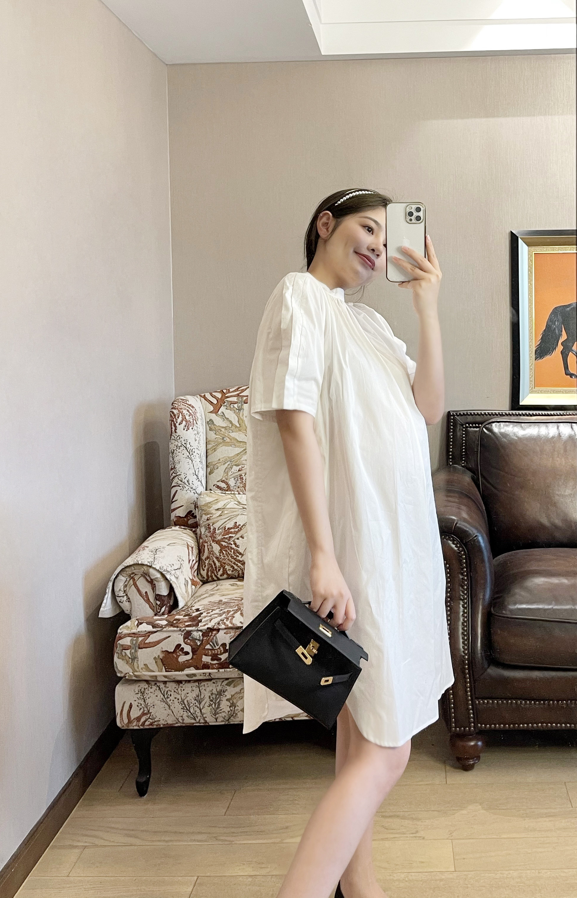 PEIPEI Pregnant Women Wear New Lift Slow-Led White Mid-Long Mom Dress Pregnant Dress
