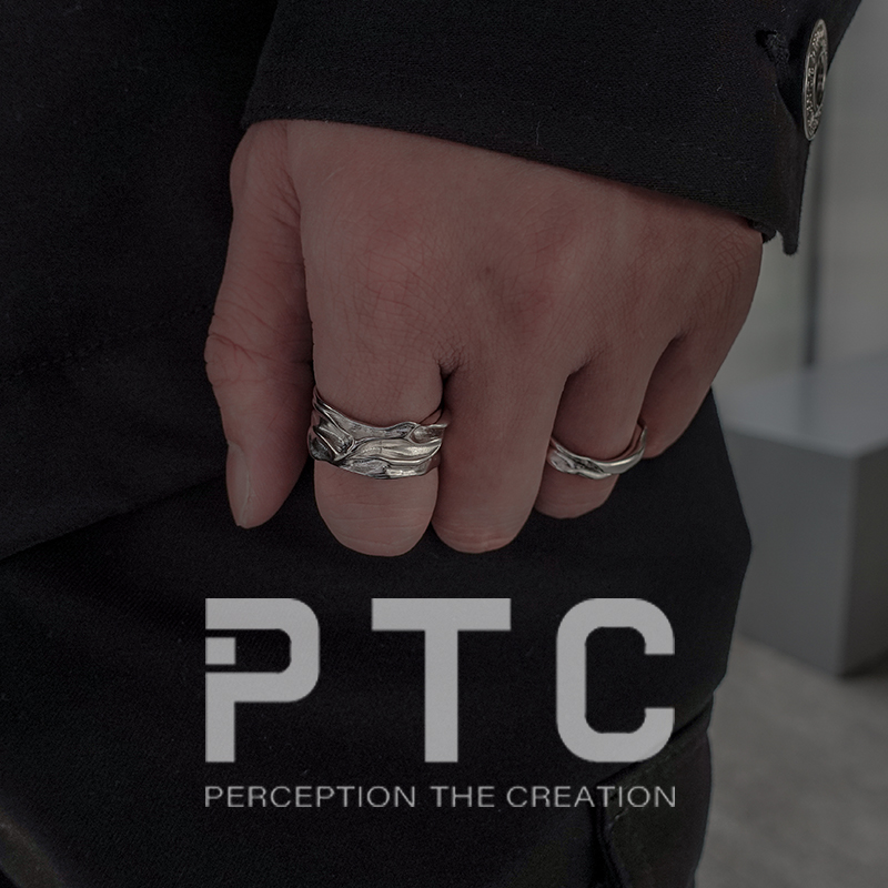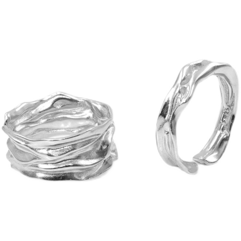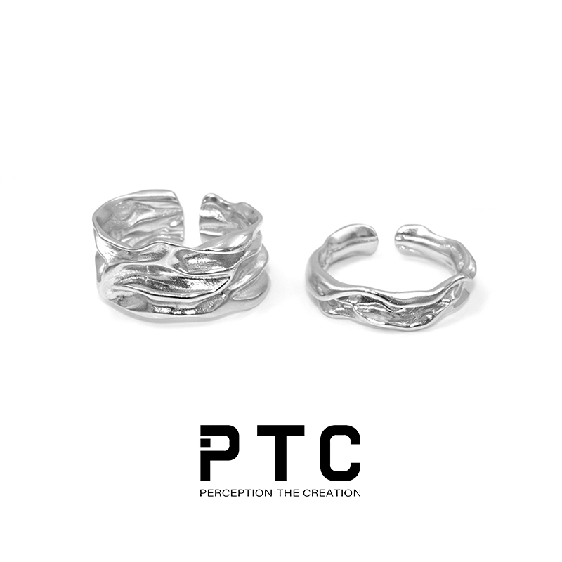 PTC cold wind niche design irregular folding opening adjustable S925 silver ring male and female models