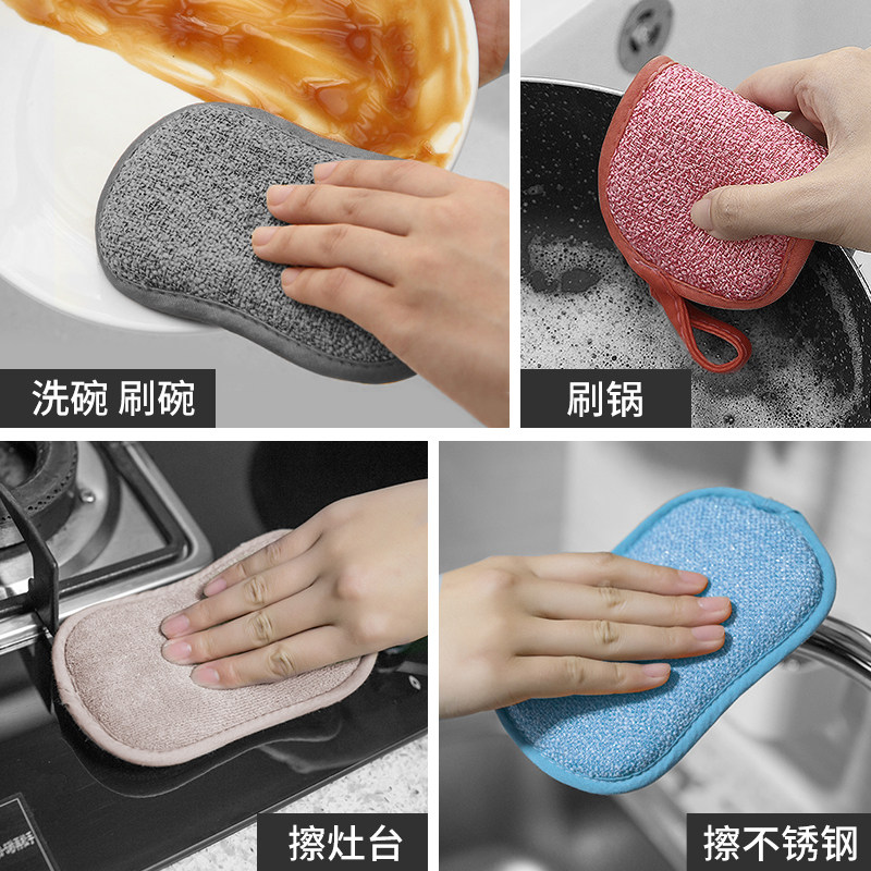 Double-sided dishwash sponge scrub durable brush pot kitchen magic wipe without oil washing dishwashing dishes