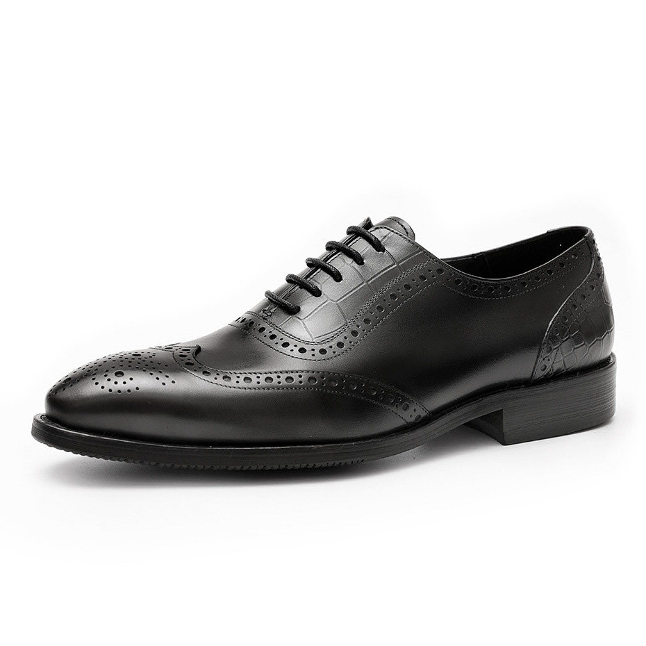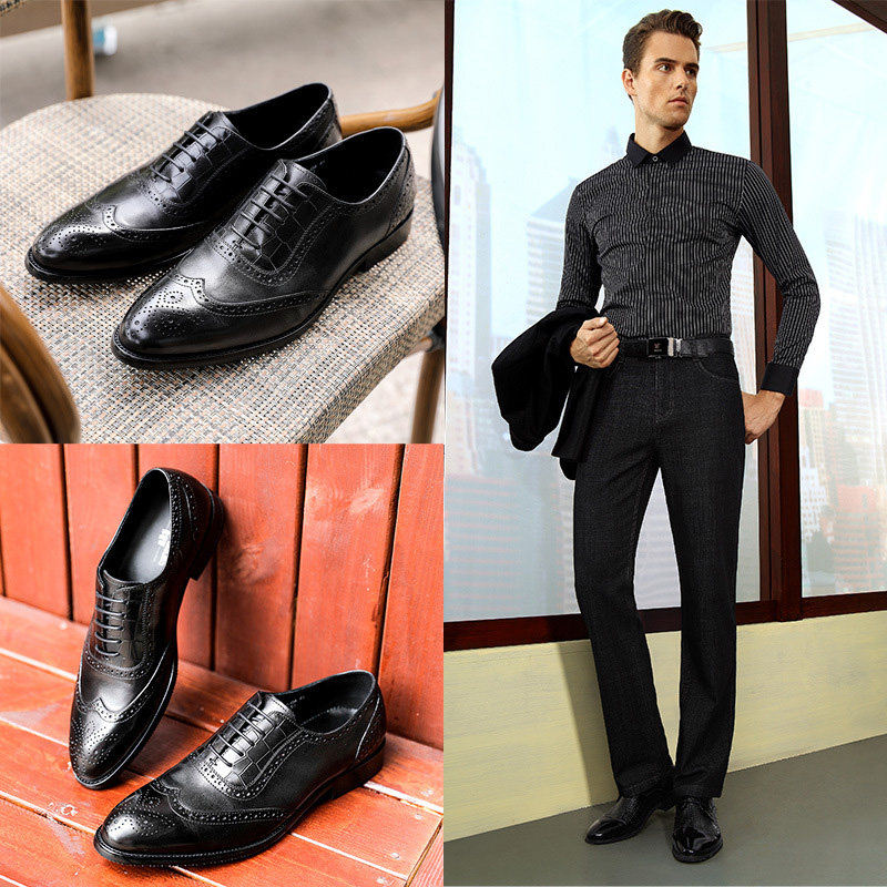 European Station New Brogue Leather Shoes Genuine Leather British Pointed Toe Formal Cowhide Business Breathable Handmade Wedding Shoes Men's Shoes