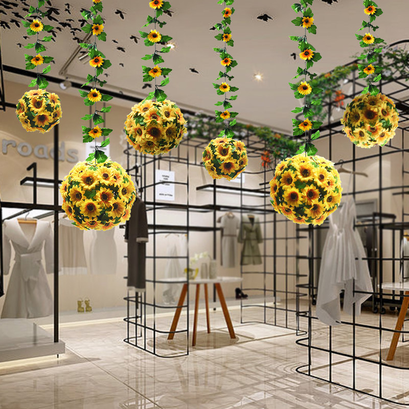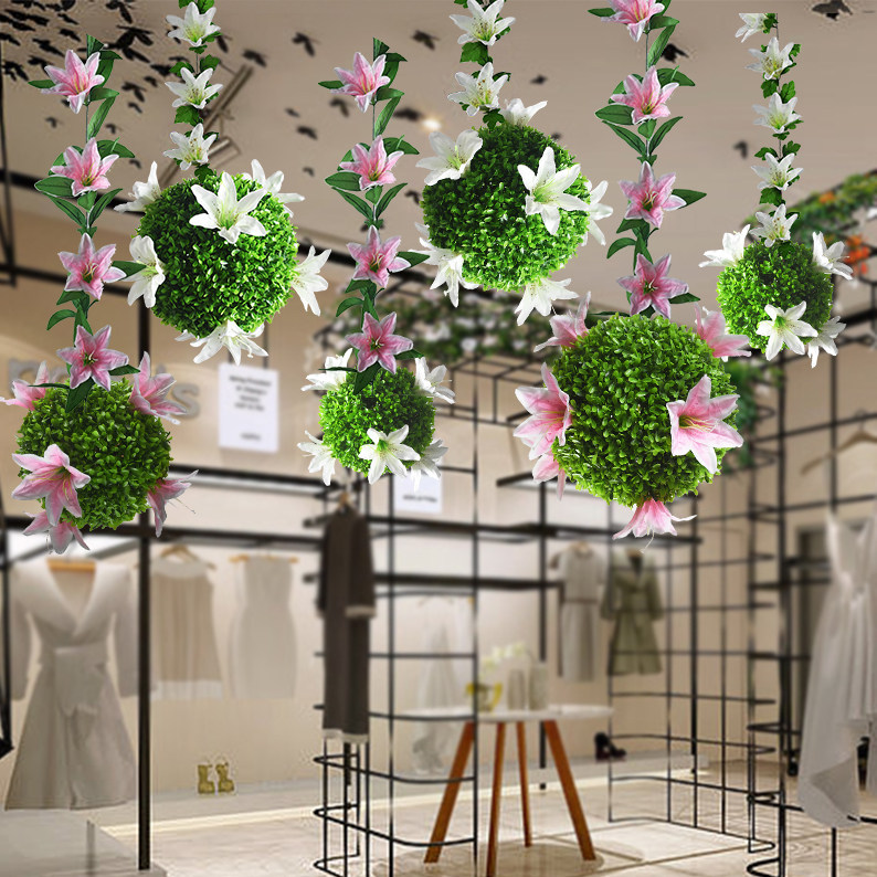 Spring shopping mall supermarket ceiling decoration kindergarten corridor decoration environment layout simulation grass flower ball decoration start school