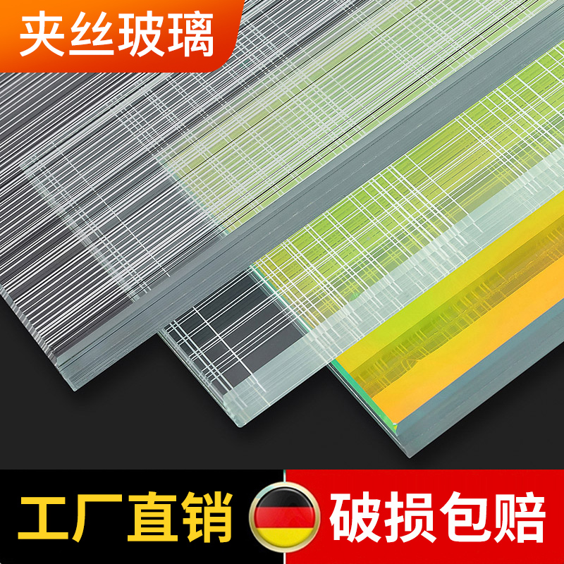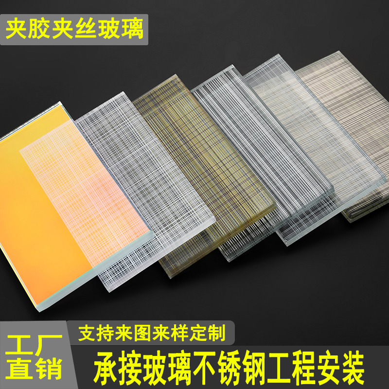 Tempered wire glass partition screen custom hotel art glass landscape painting double-layer laminated silk sliding door