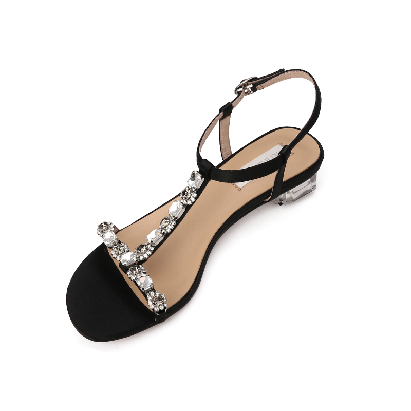Lv Xiaobu ~ 2022 new rhinestone sandals women's middle heel with summer Korean crystal and summer fairy style