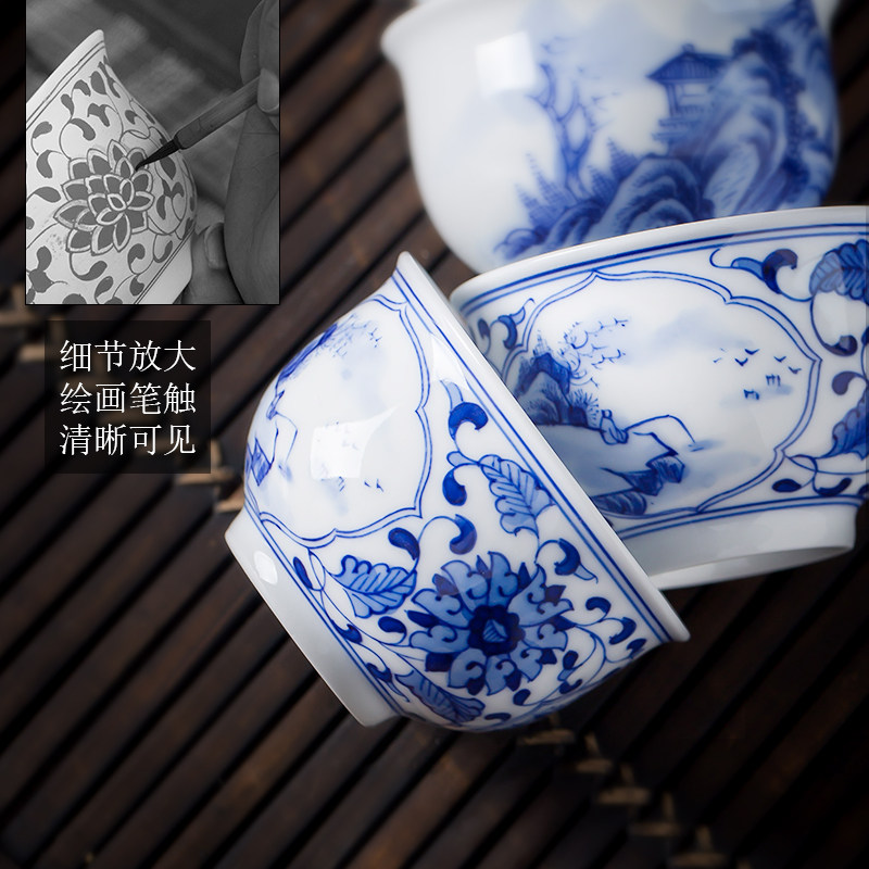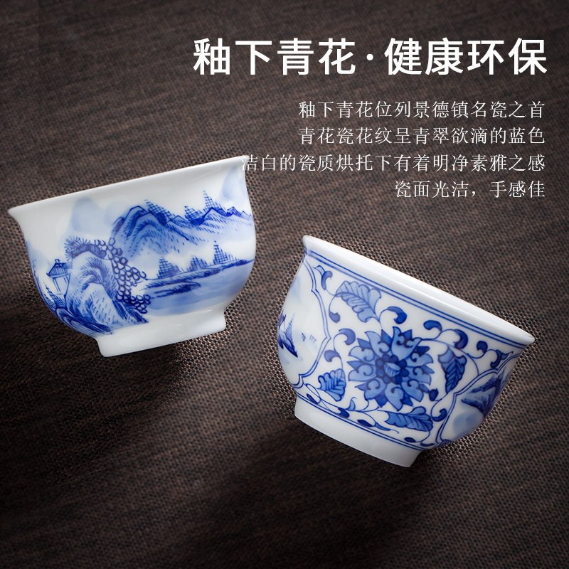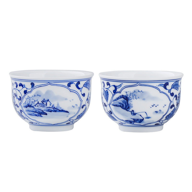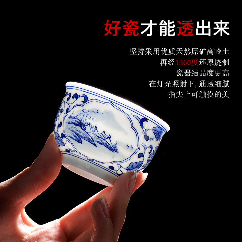 Jingdezhen hand-painted green flower ceramic mountain and water tea cup master cup single high-end white porcelain kung fu cup