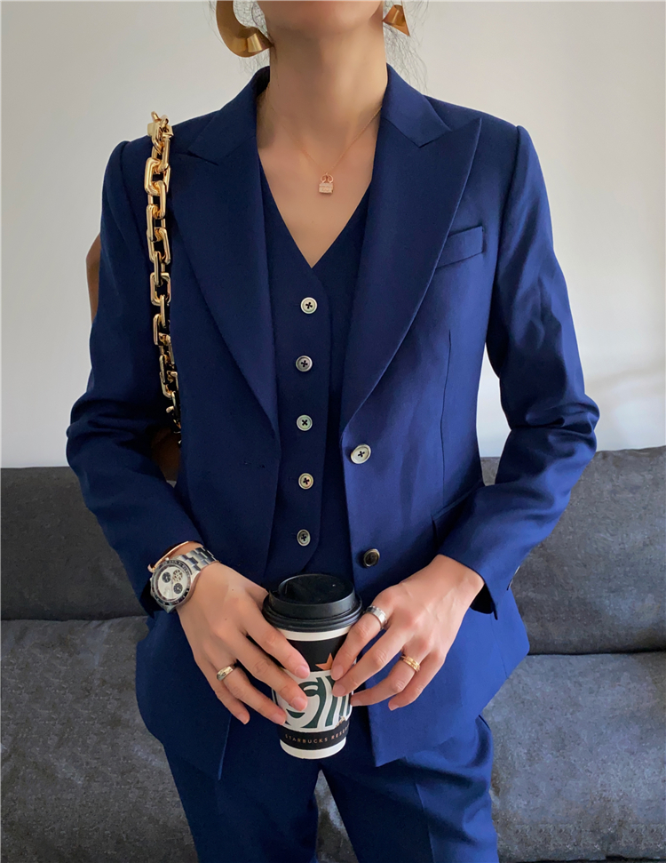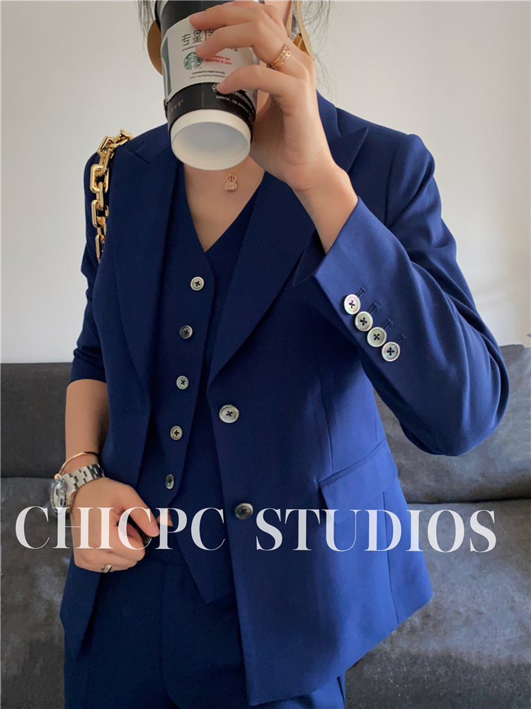 Royal Blue Suit Vest three sets of women's career Advanced senses suit Body Tooling Reduced-age Fried Street Spring and Autumn President