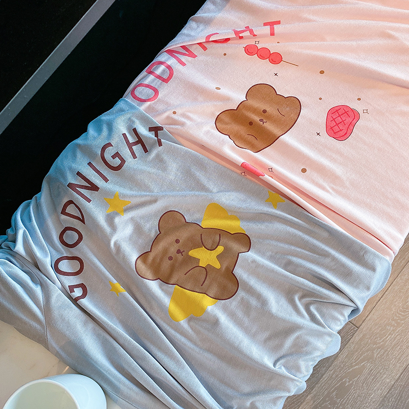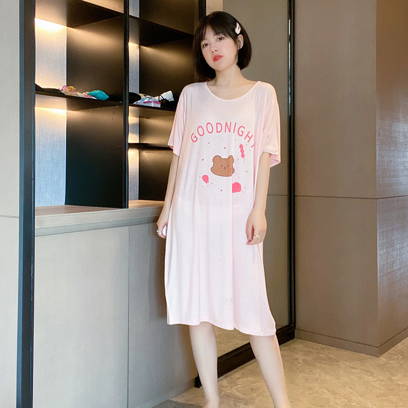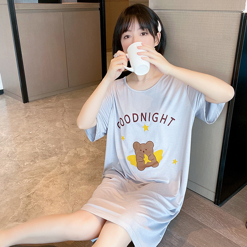 Good night Little Bear Modale Short sleeves Sleeping Skirt Woman Summer Long Edition Cute Cartoon Pyjamas Spring Autumn Thin family clothes