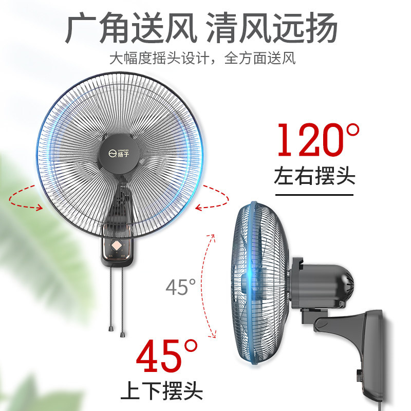 Yangzi wall fan Wall-mounted remote control electric fan Household wall-mounted wall strong industrial shaking head electric fan big wind