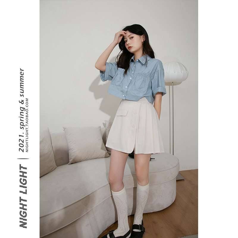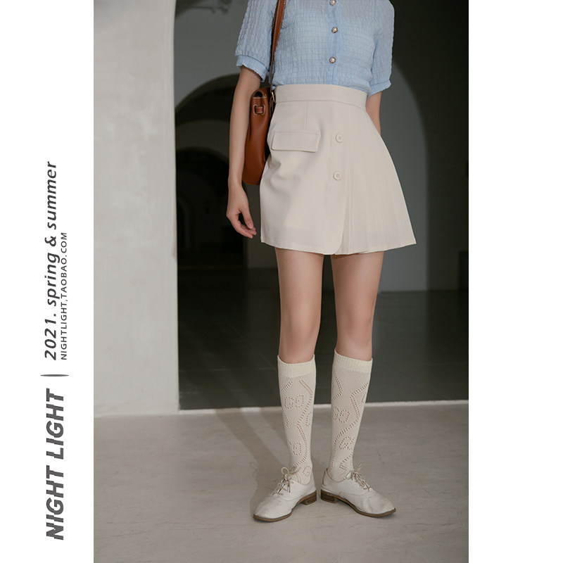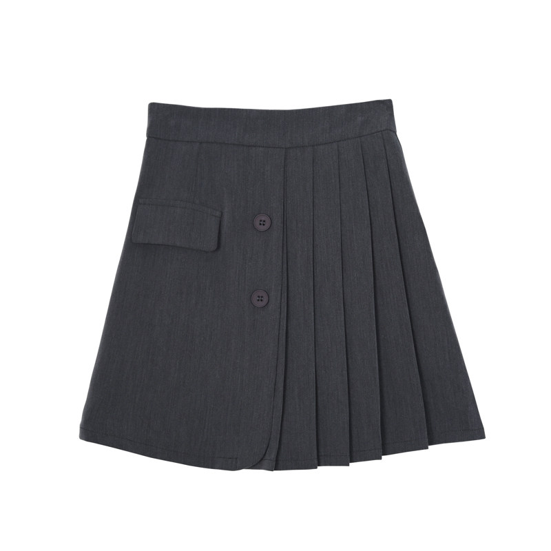 Luminous high waist pleated skirt skirt women's irregular fake pocket breasted a-line skirt short skirt 2022 summer new
