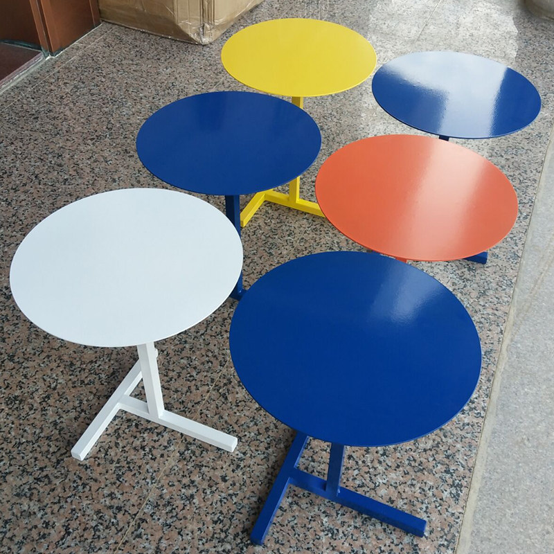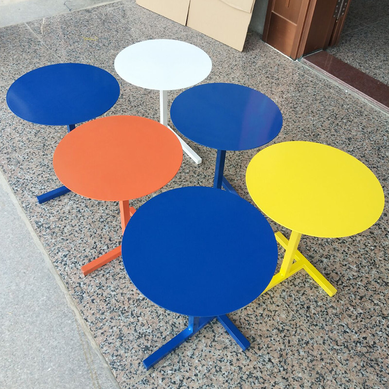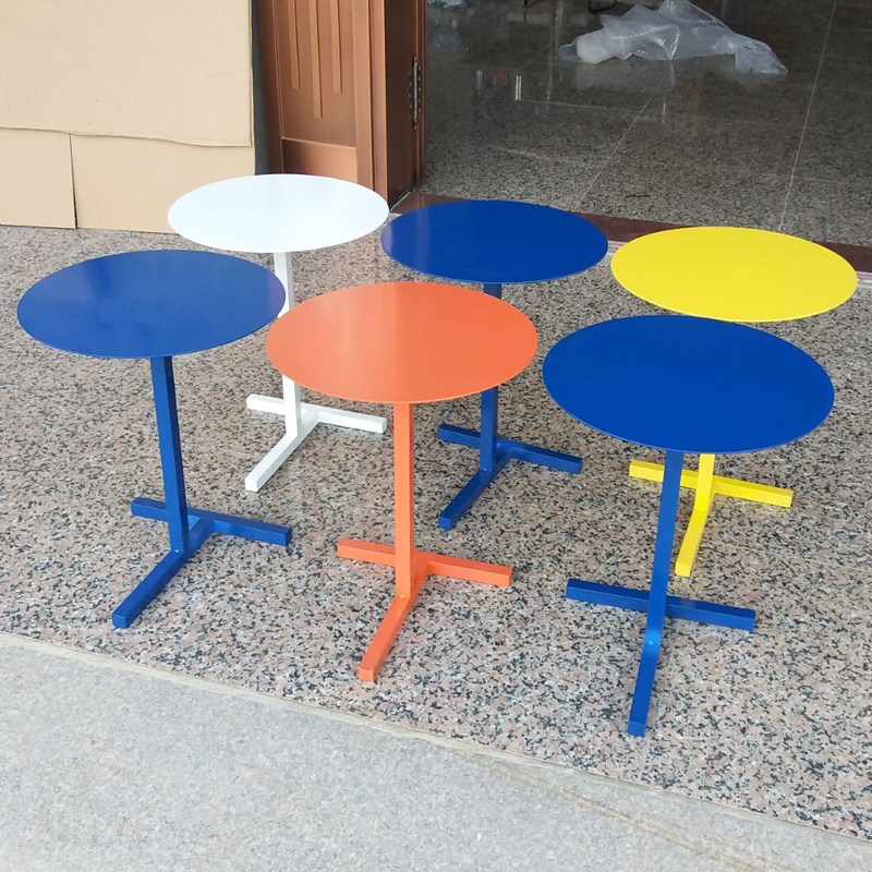 Designer pink paint coffee table creative iron milk tea shop hi tea small round table Nordic light luxury sofa side table