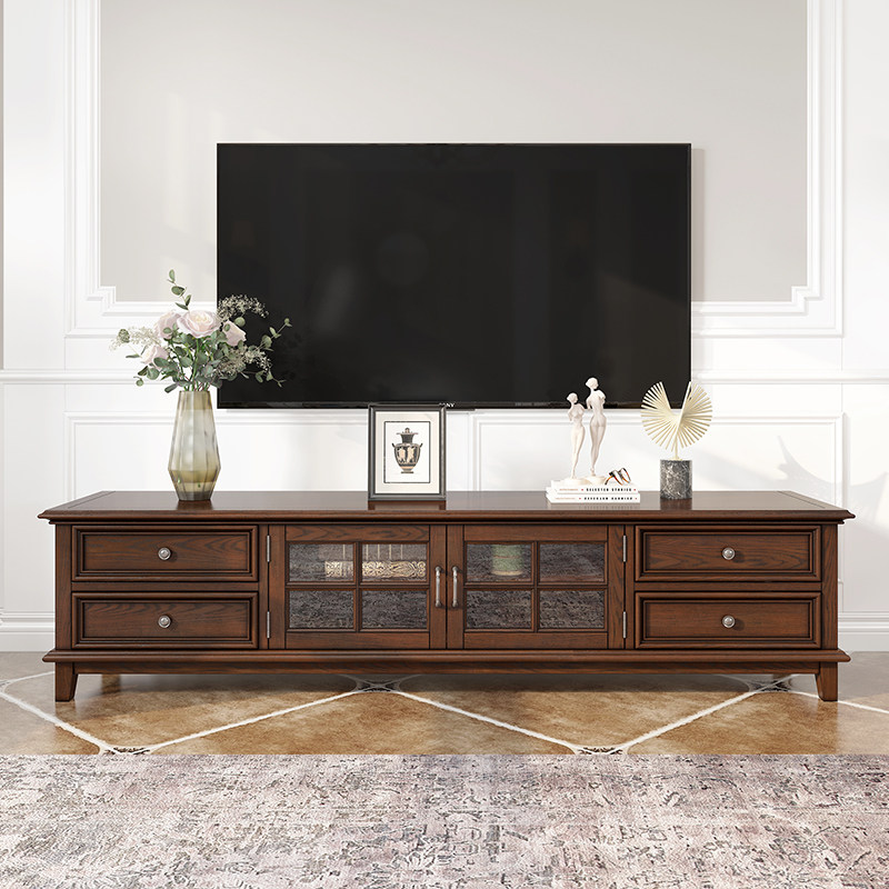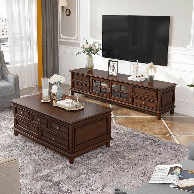 American countryside solid wood TV cabinet tea table combination small family type retro simple living room white wax wood film and TV cabinet furniture
