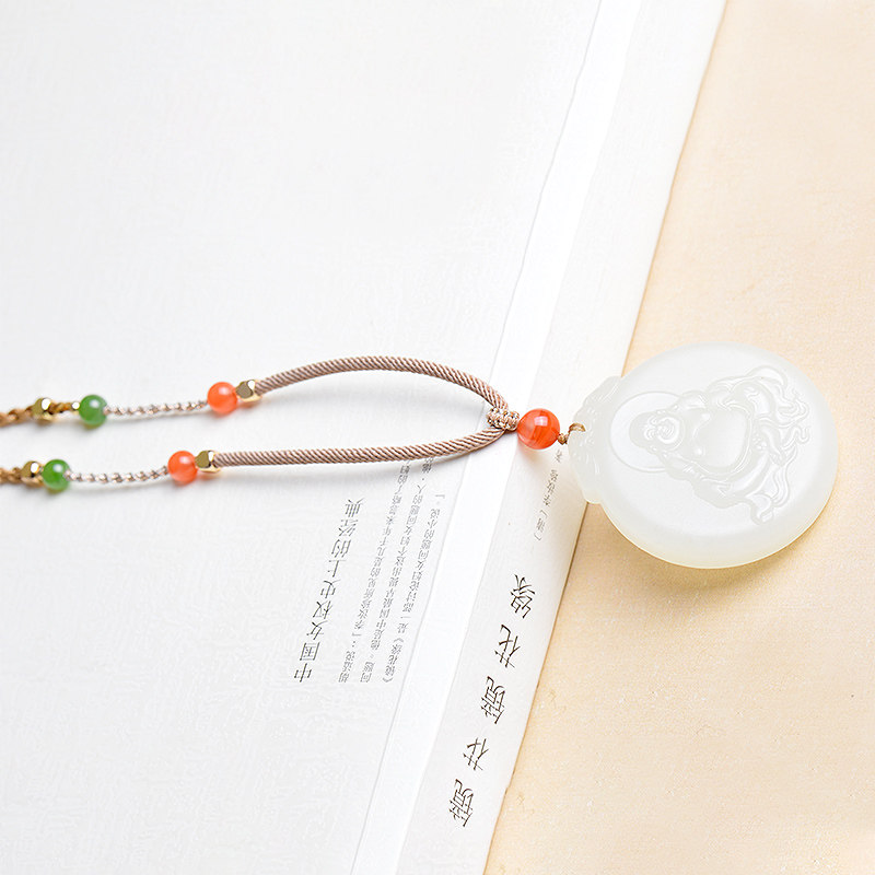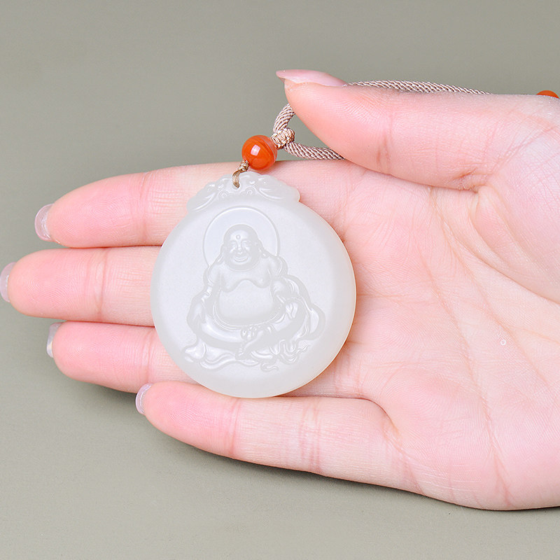 Feng Fei and Tian Yufo Gong Gong Pendant Woman's Round Jade Buddha jade pendant double face engraving Yupei Yupe Marefo