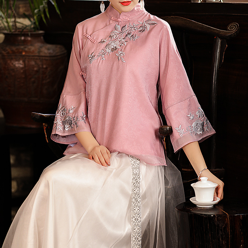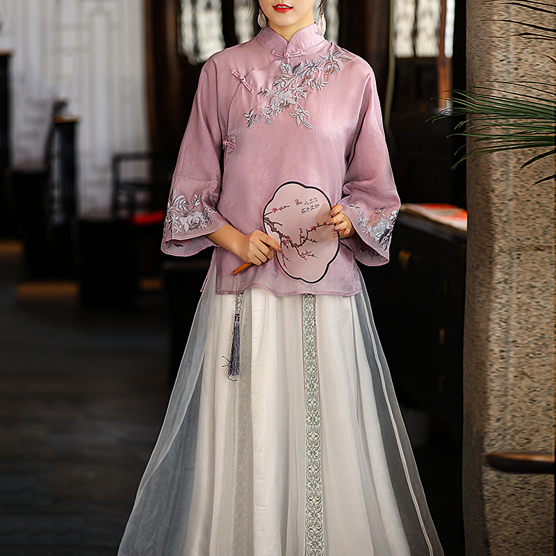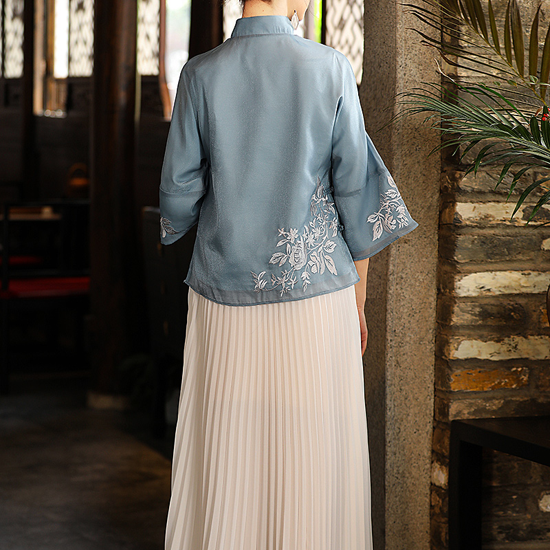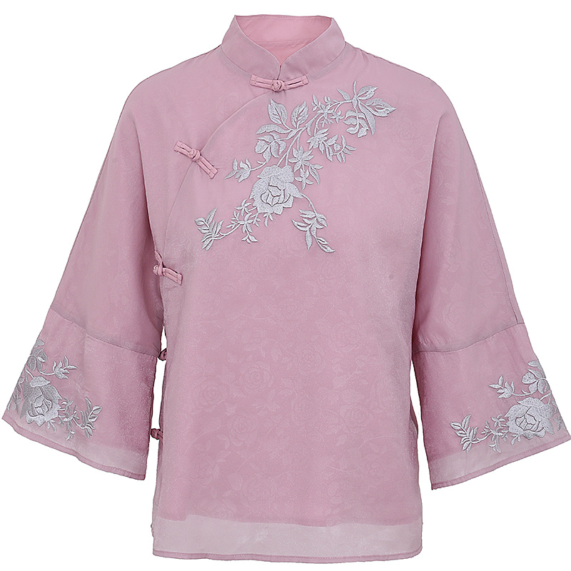 Tang suit Chinese style women's Chinese style embroidered improved cheongsam top Wide leg pants suit female summer retro two-piece suit