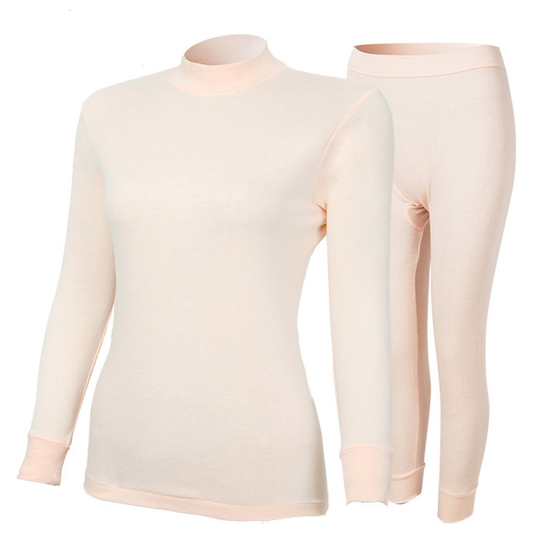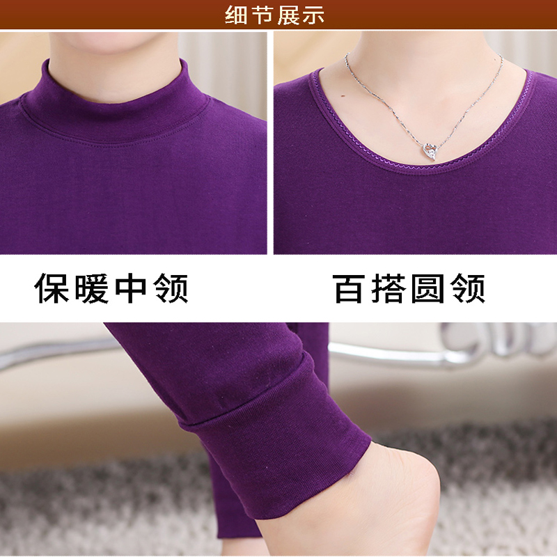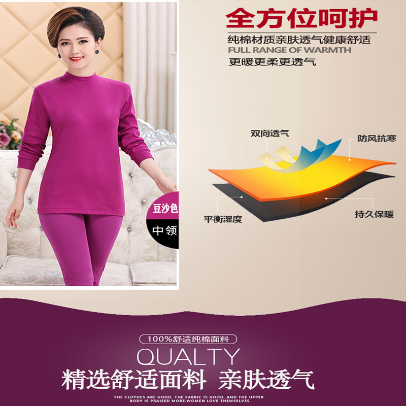 Red bean pure cotton ladies underwear loose large size high-neck round neck mother middle-aged and elderly long-sleeved long-sleeved autumn clothes sanitary pants suit