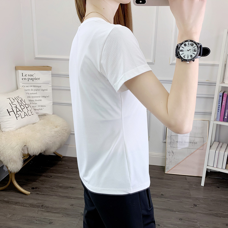 Summer White Fitness Mesh Speed Dry T-shirt Woman Male Round Collar Sports Outdoor Fabric Short Sleeve Ice Silk Slideshow Thin