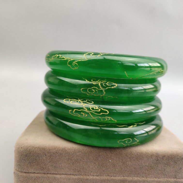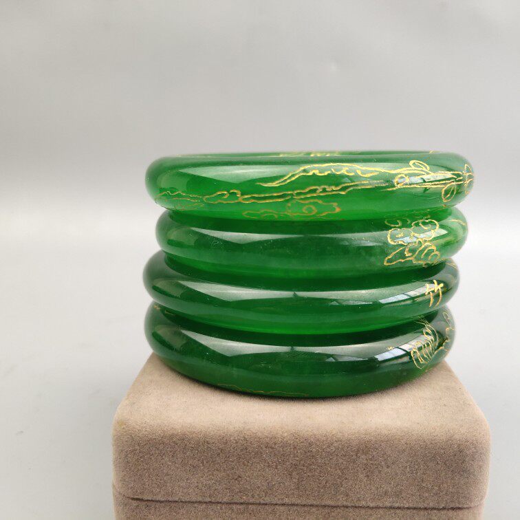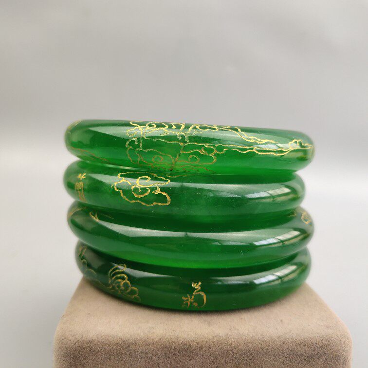 Ancient jade antique jade antique Qing Dynasty Myanmar high ice imperium king green old emerald sketching gold meranzhu Chrysanthemum Bracelet Imitation Ancient Woman bracelet