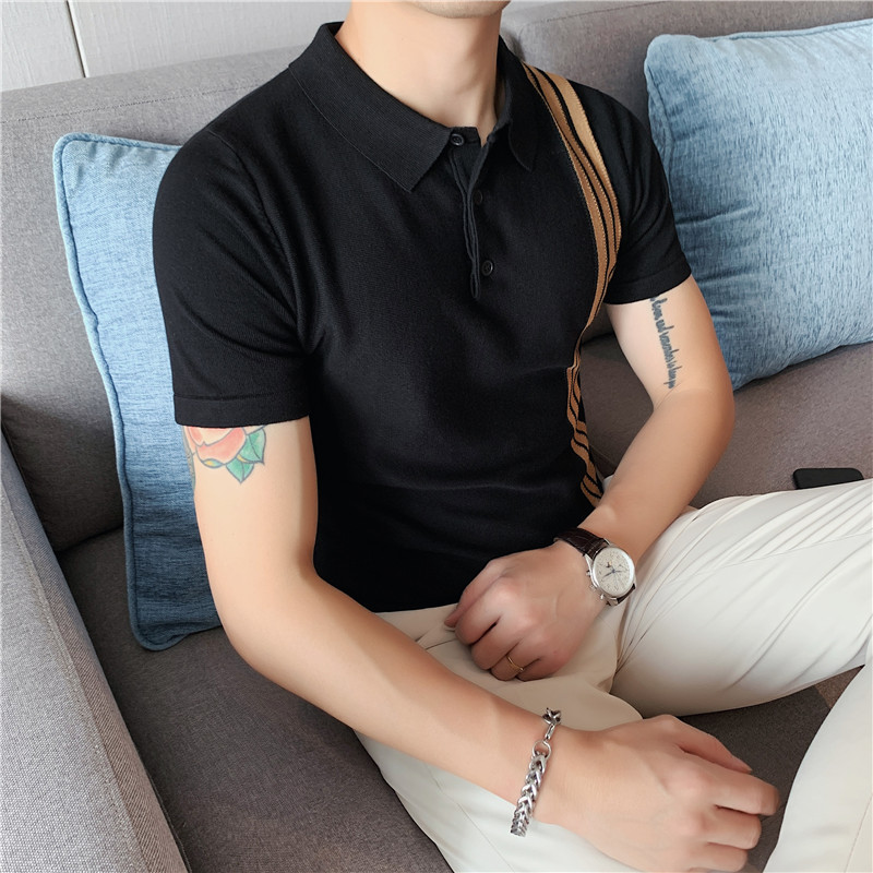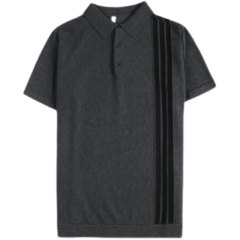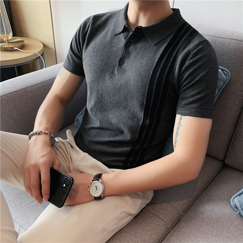Summer thin high-end POLO shirt striped short-sleeved T-shirt men's knitted contrast color casual slim Korean trend lapel