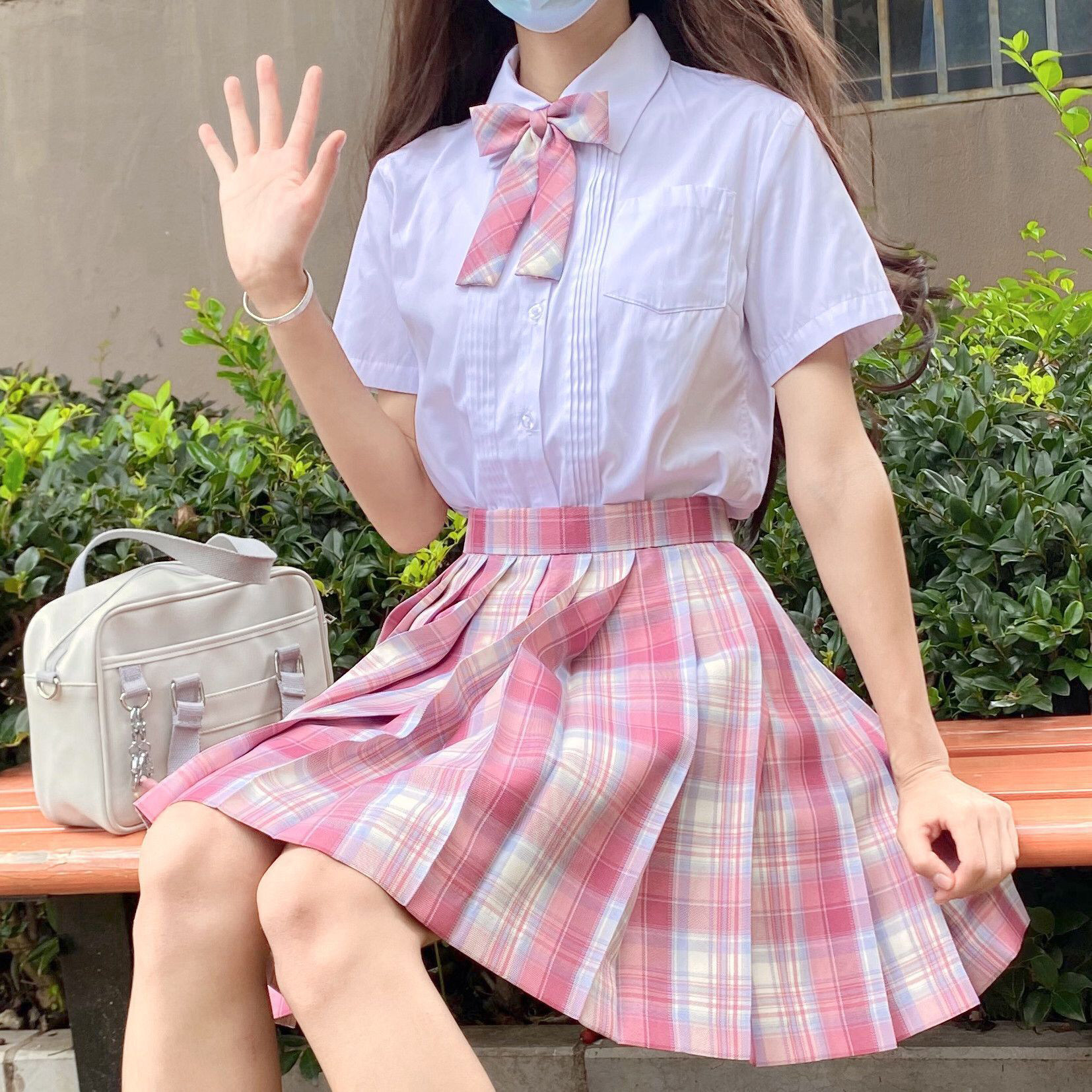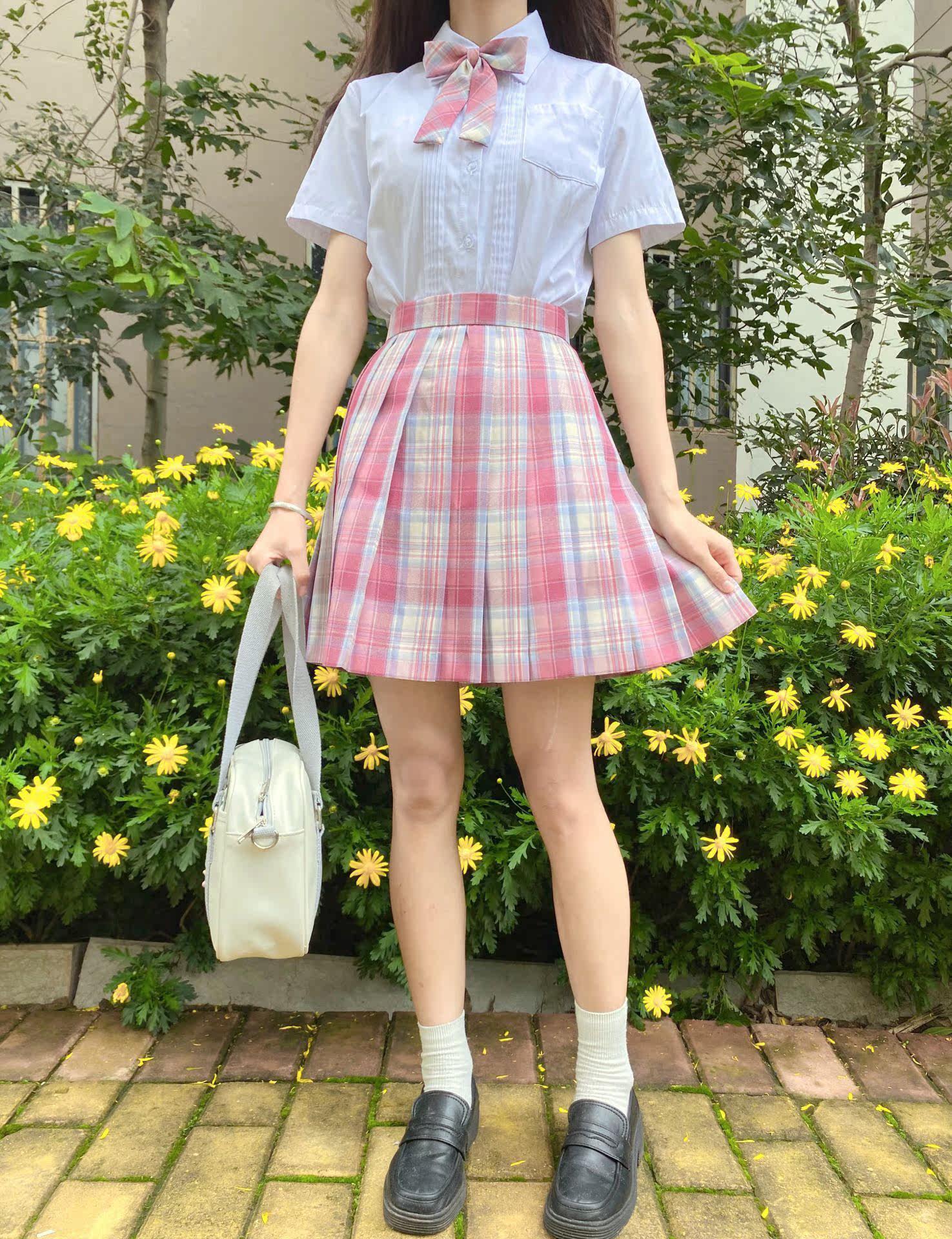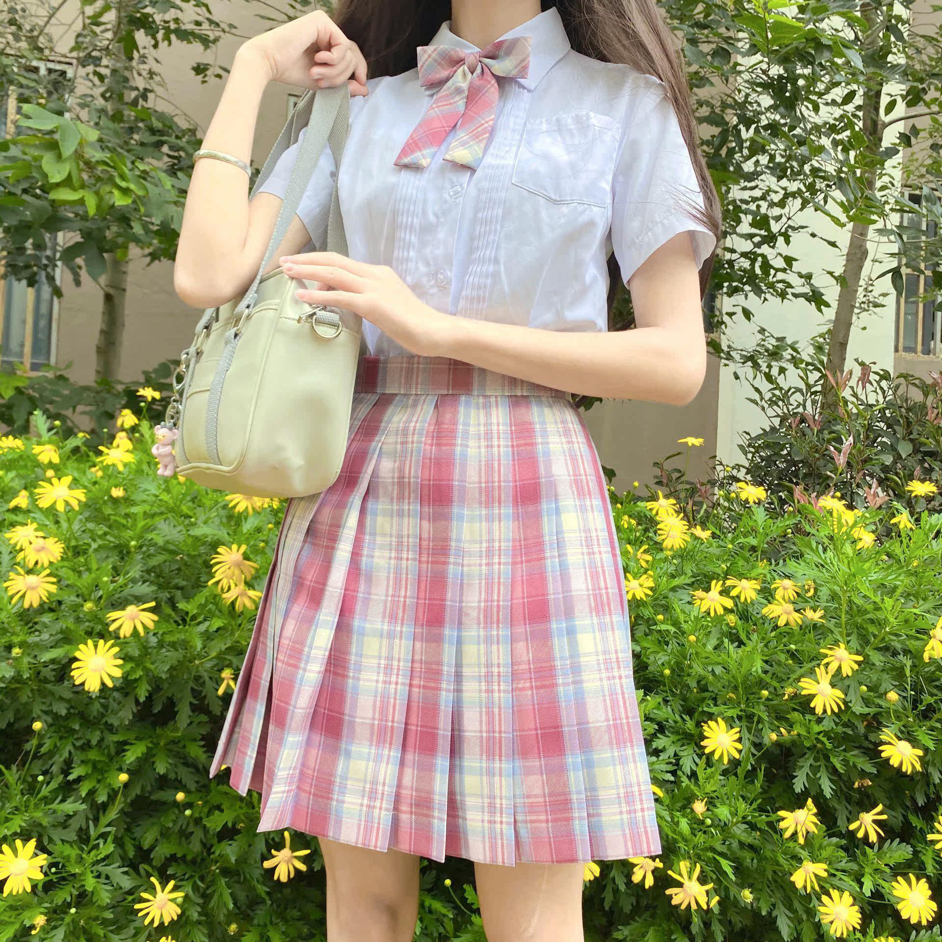 Large pink plaid plaid skirt Short sleeve bow tie Large pink plaid plaid skirt Long sleeve bow tie Gentle knife plaid skirt Short sleeve bow tie Gentle knife plaid skirt Long sleeve bow tie Raspberry black tea plaid skirt Short sleeve bow tie