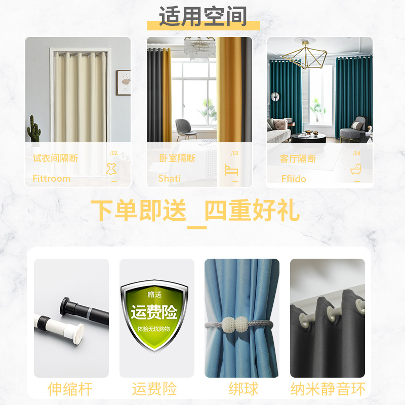 Curtains are installed without punching and send telescopic rods a complete set of bedroom full shading finished bay window simple rental house partition