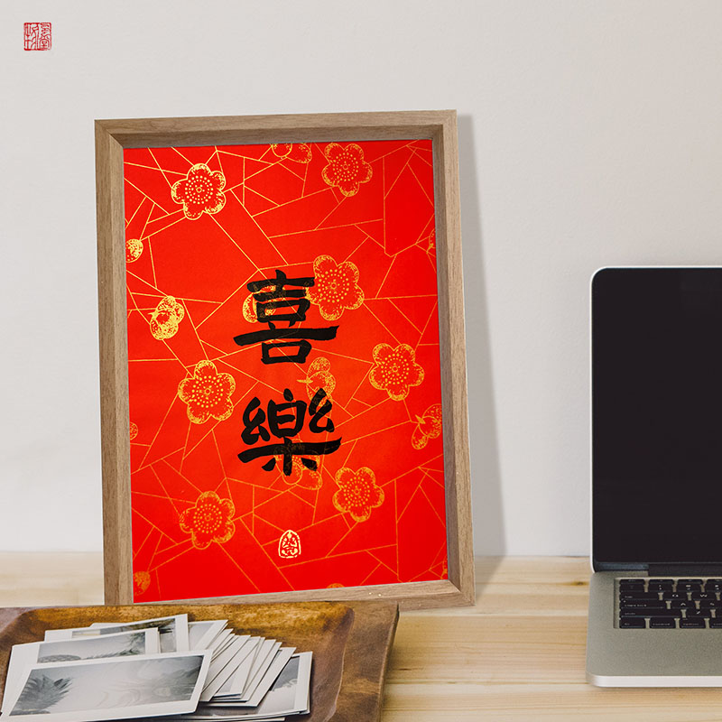 Joy handwriting calligraphy painting desk desk decoration red ornaments craft painting housewarming new home literary gift