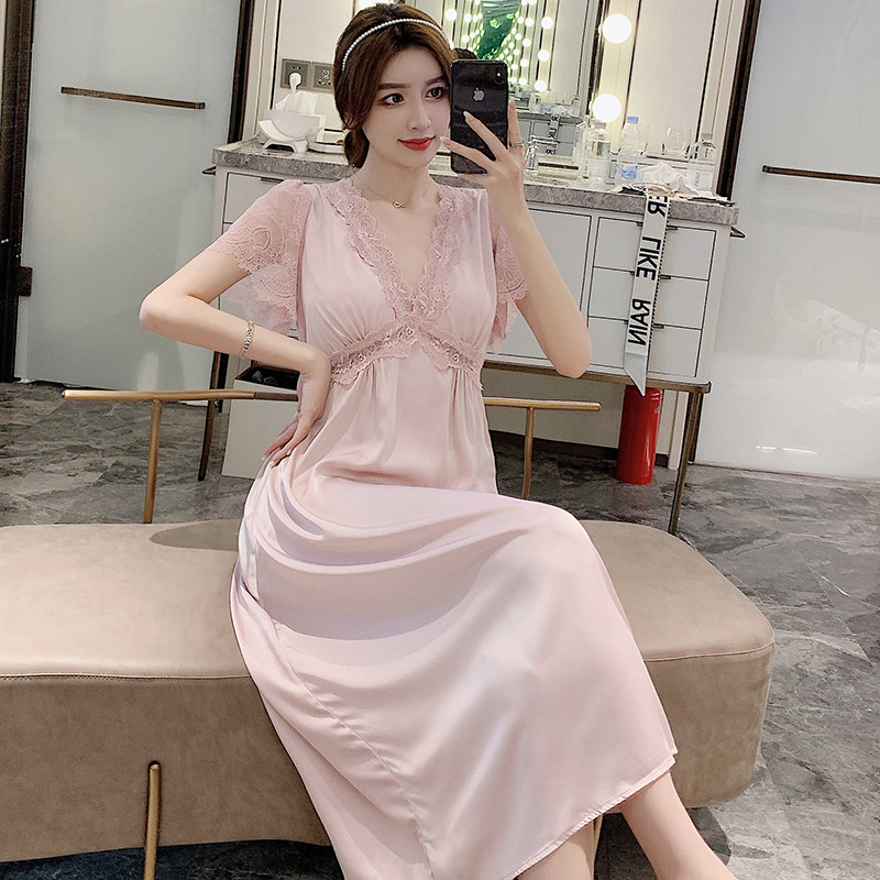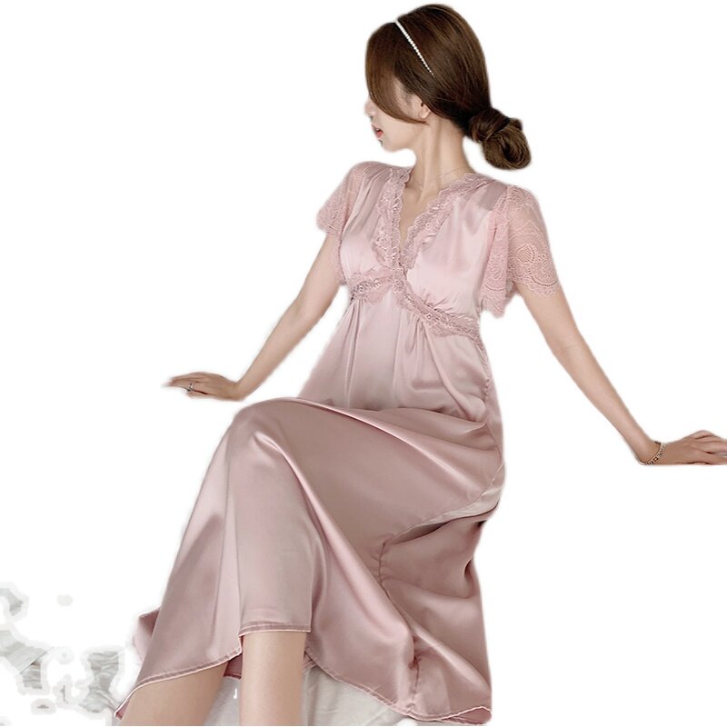 2022 Sexy ice wire pajamas female spring and summer French retro court short sleeping dress can be worn outside the home clothing tide