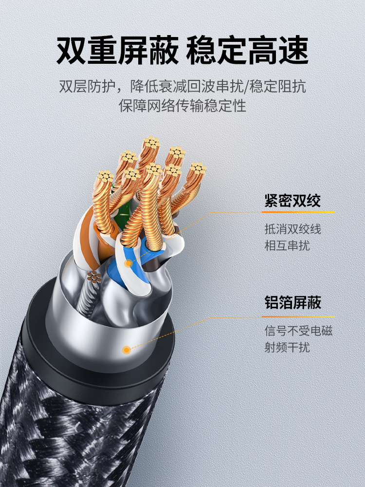 Green Union cat8 Eight-class Internet line 10,000 trillion broadband home electric race weaving 7 Type of computer Two double heads to connect 5 m
