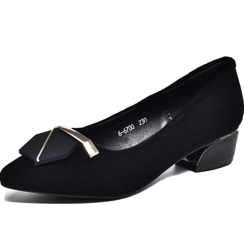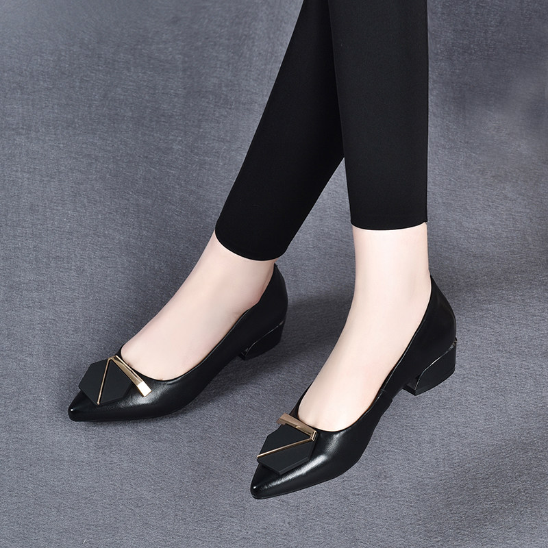 High Heel Shoes True Leather Shoes Children 2022 New Seasons Small Single Shoes Seven Words Button Cashmere Temperament Fine Heel Working Shoes