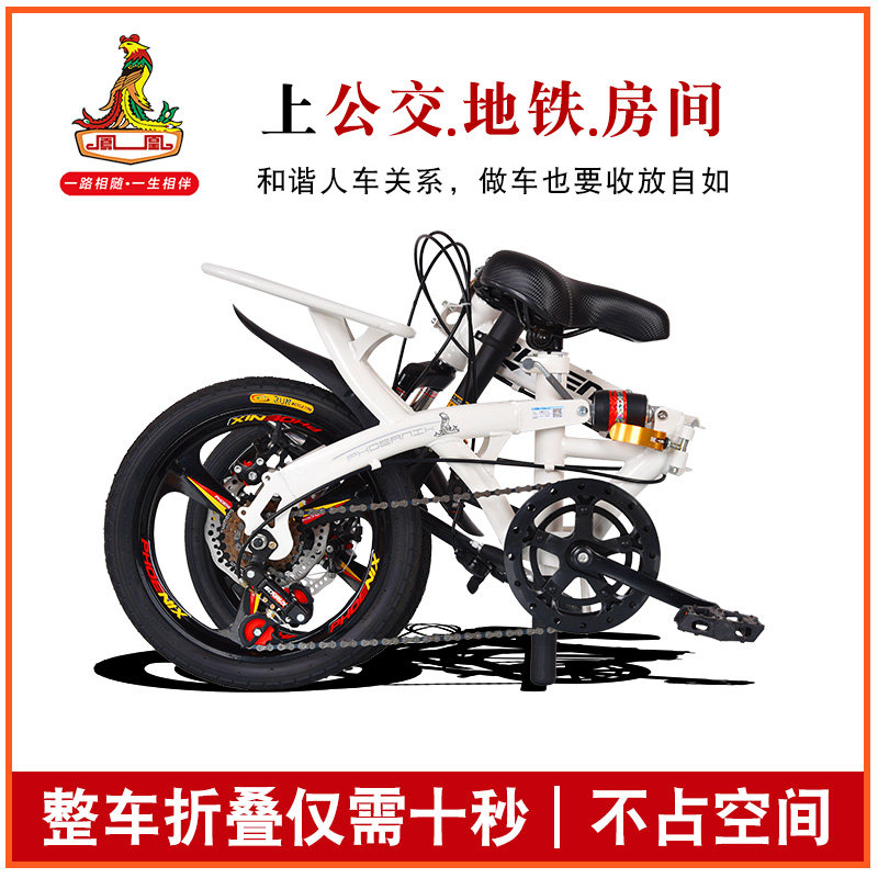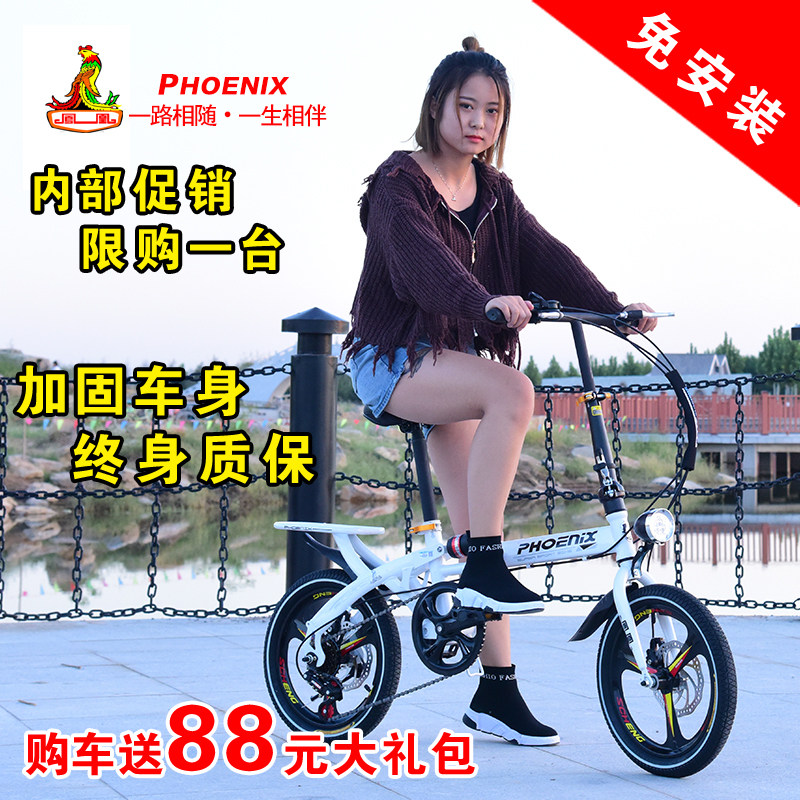 Phoenix folding bicycle adult commuter student small portable pedal variable speed leisure bicycle 16 men and women 20 inches