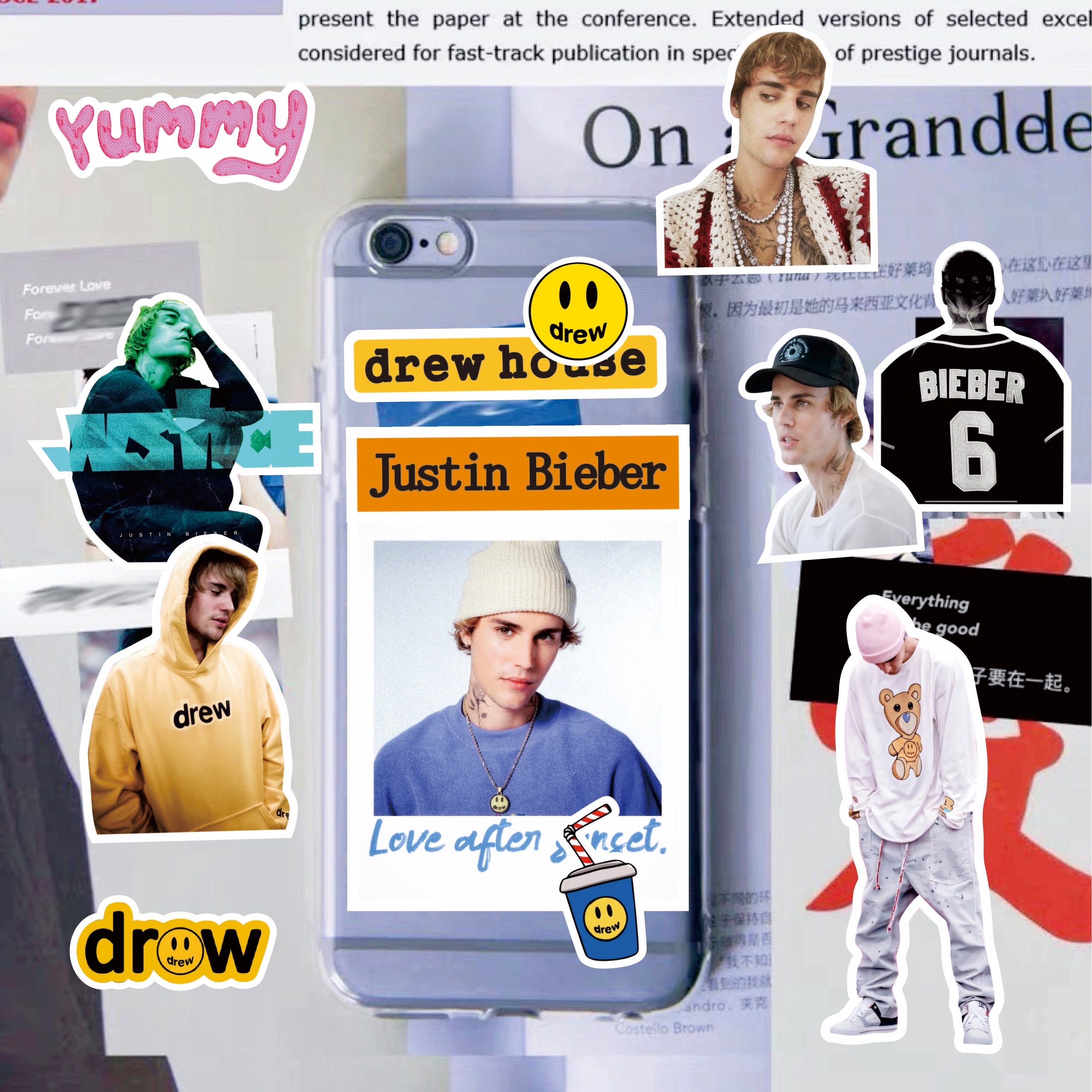 Handbill sticker Justin Bieber Justin Bieber's smiling face DrewHouse Tide Card Decoration Sticker