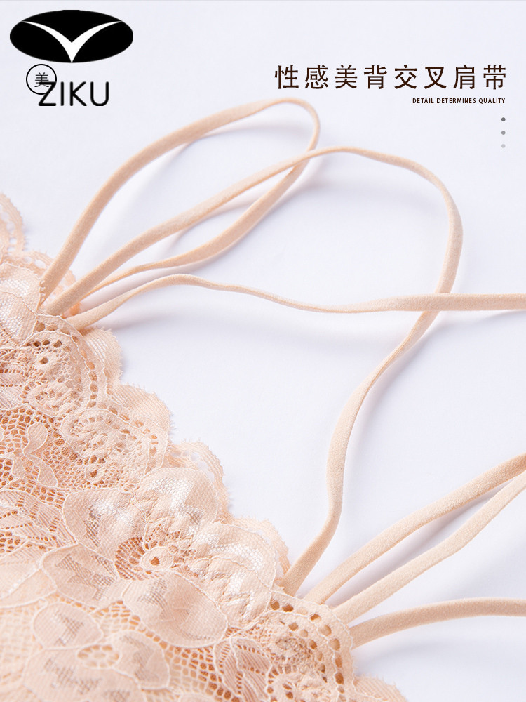 Japanese lace small cute lingerie woman with breast padded beauty back harness mesh red popcorn wrapped in chest lap anti-light bra thin