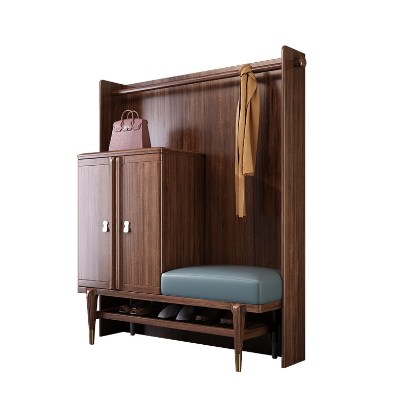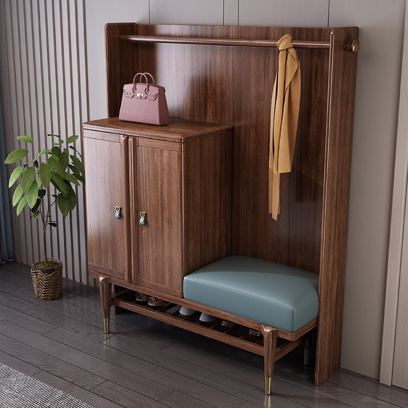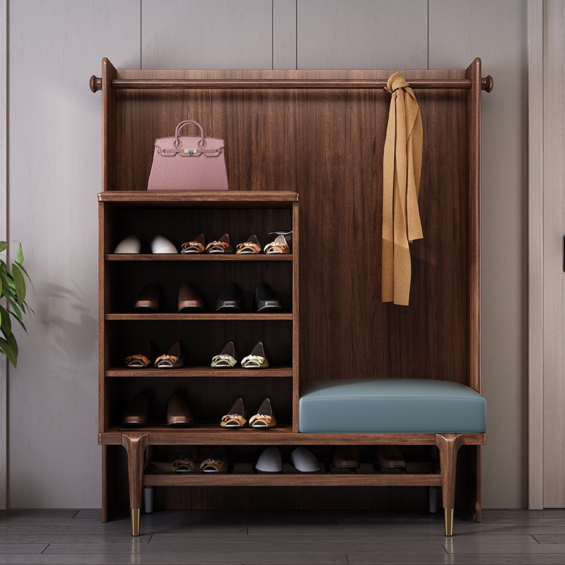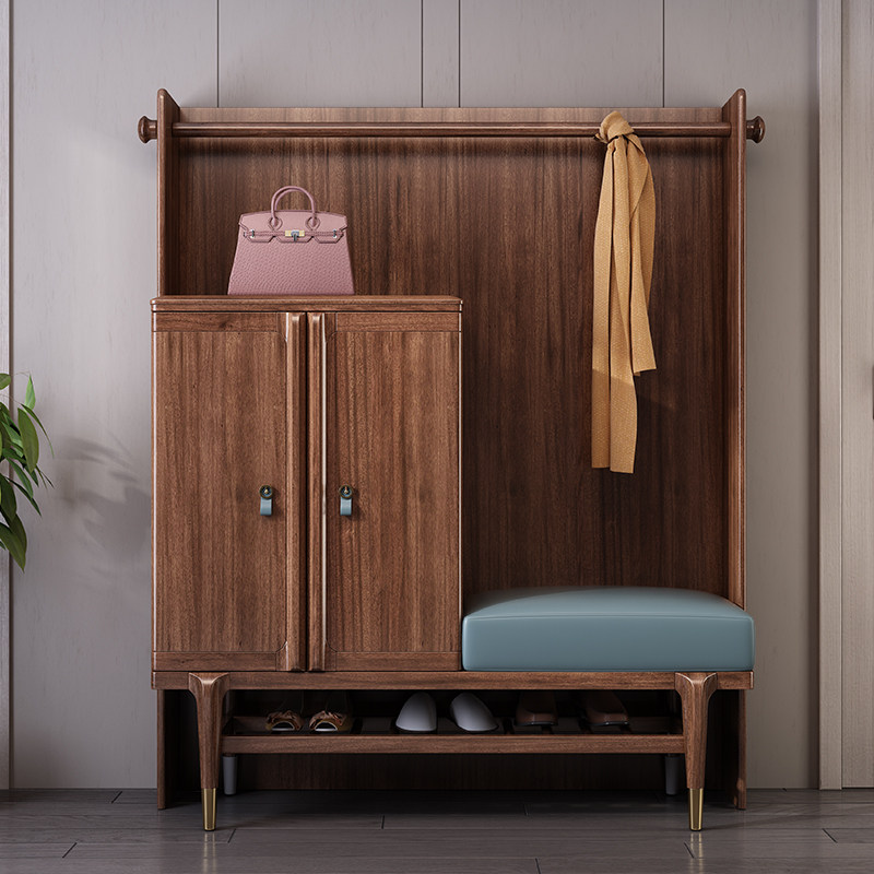 Multifunctional solid wood shoe cabinet walnut large-capacity entry door light luxury living room entry coat rack one-piece shoe change stool