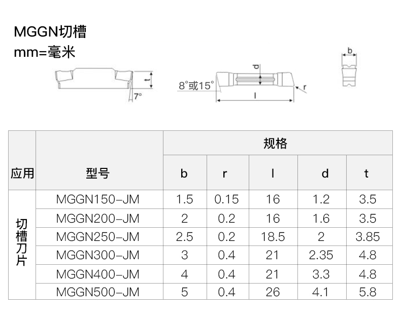 CNC grooving cutting knife aluminum copper general MGGN150 200 300 400-JM oblique blade MGMN500M